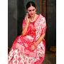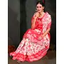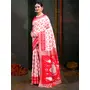 White & Red Color Linen Cotton Wevon Jacquard Designer Saree
