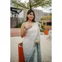 White Color Trendy Fendy Satin Fabric Pedding With Beads Hand Work Saree