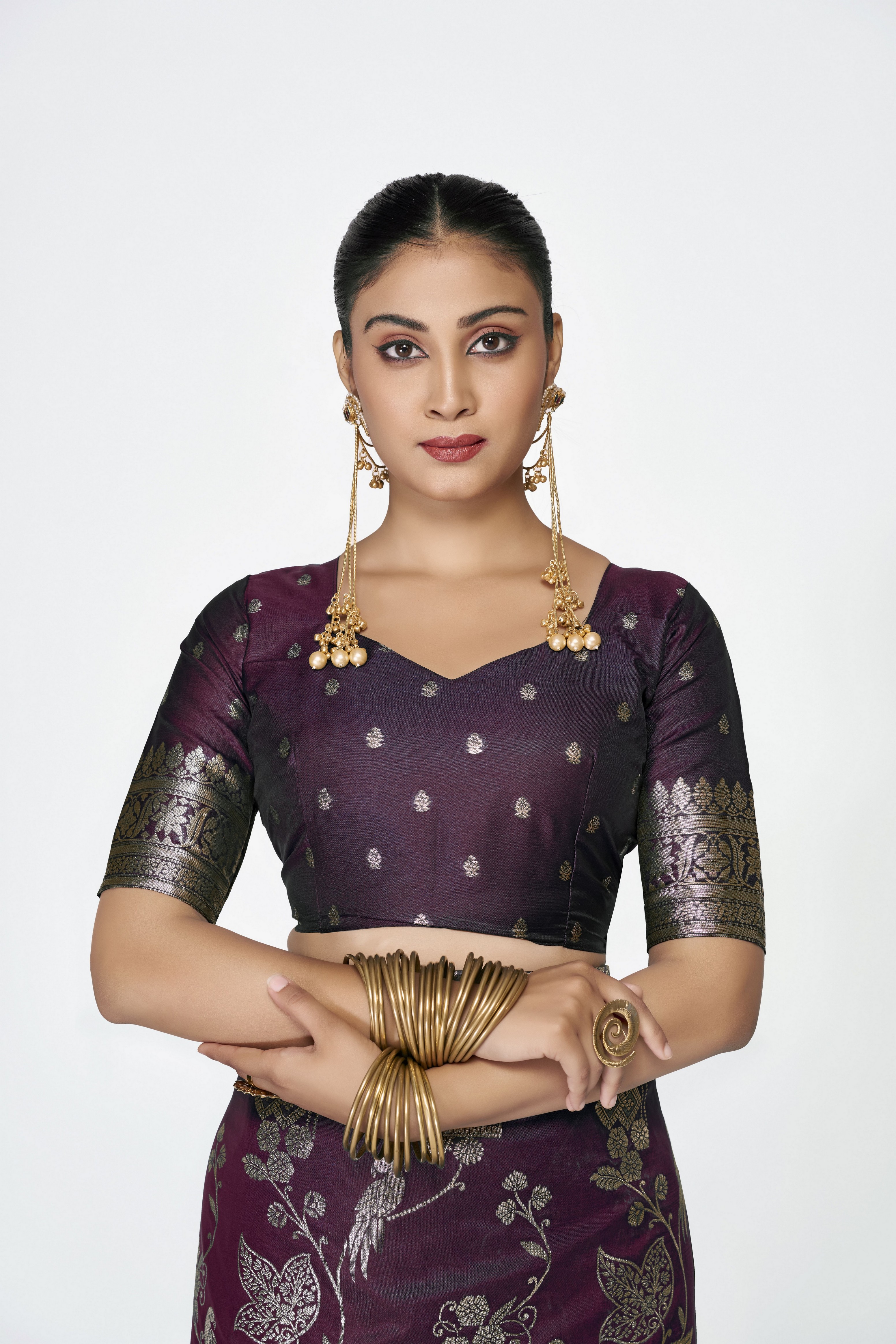 Wine Color Banarasi Silk Fabric Woven Jari Designer Ceremonial Partywear Saree