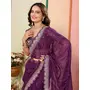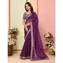 Wine Color Organza Fabric Designer Embroidery Work Patywear Saree