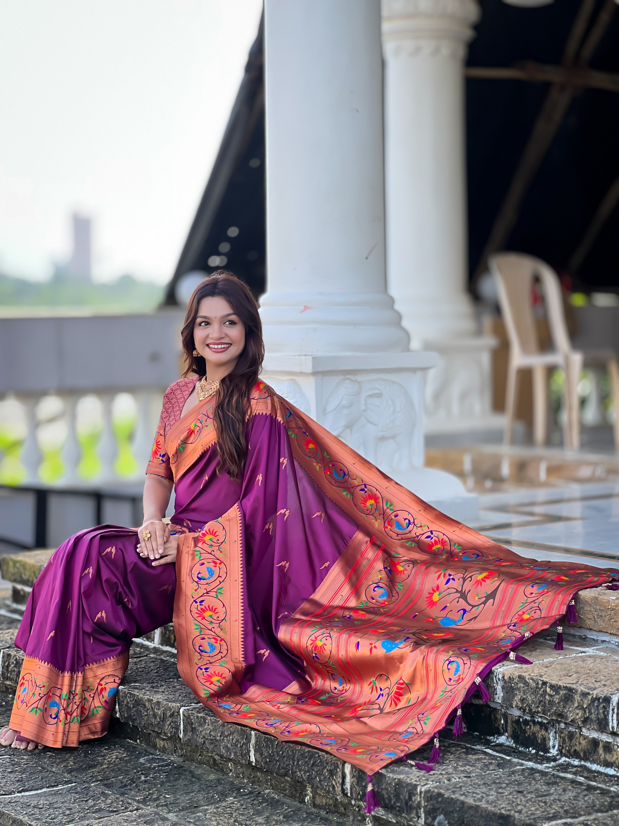 Wine Color Paithani Silk Fabric Woven Meenakari Jacquard Designer Graceful Wedding Saree
