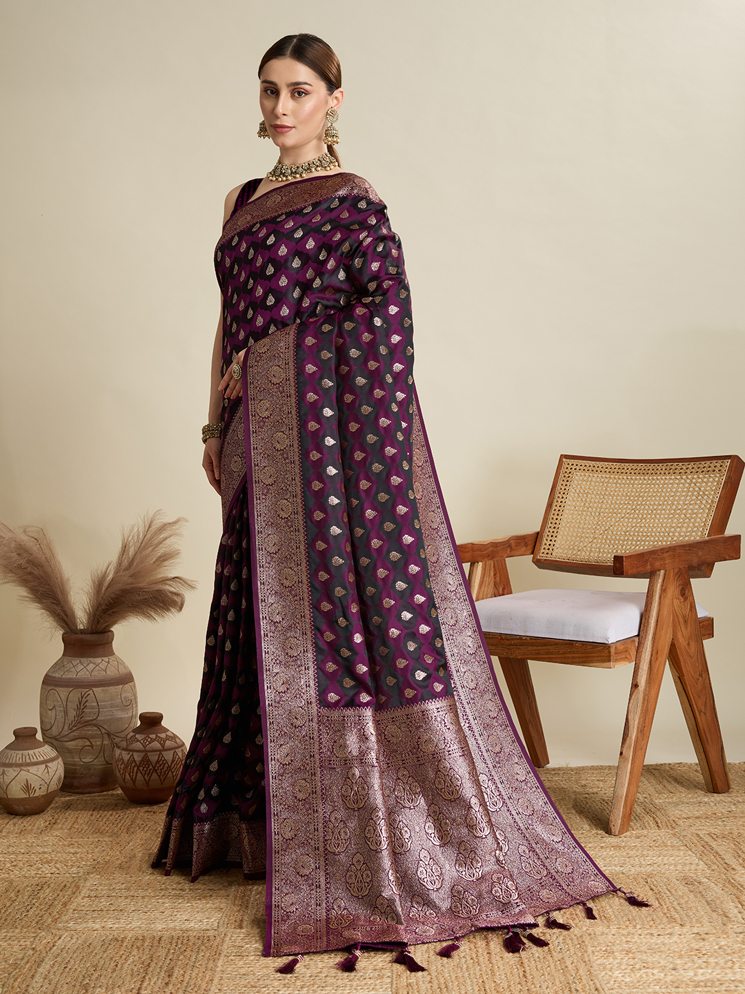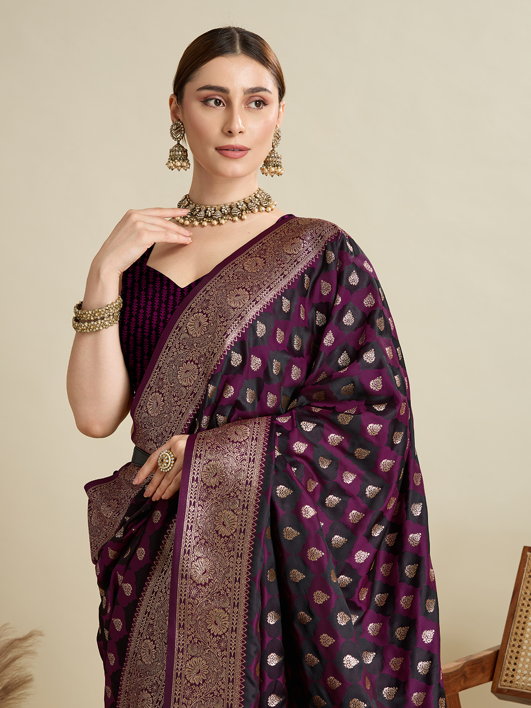 Wine Color Satin Silk Wevon Jari Designer Graceful Ethnic Saree