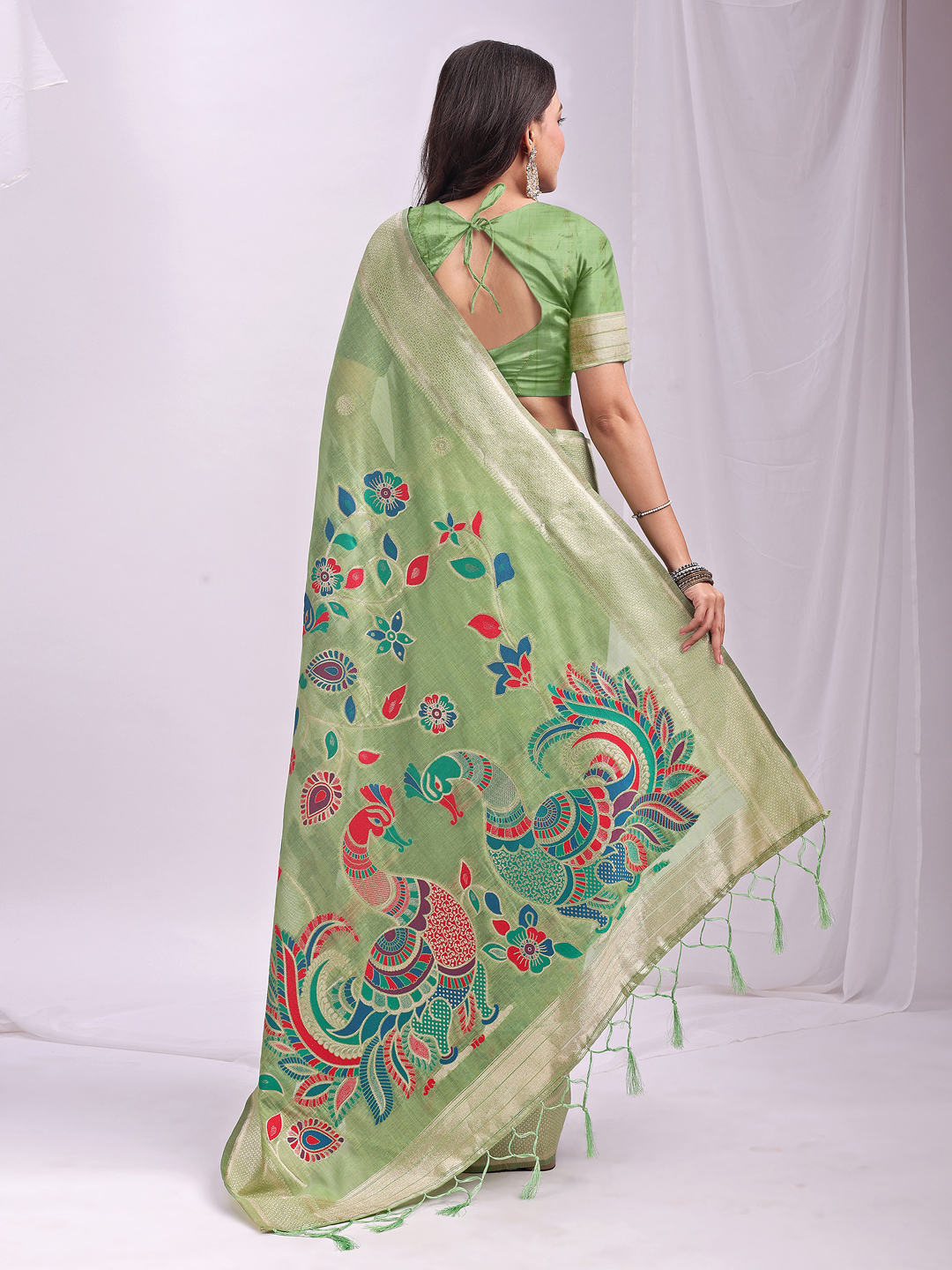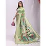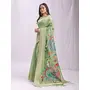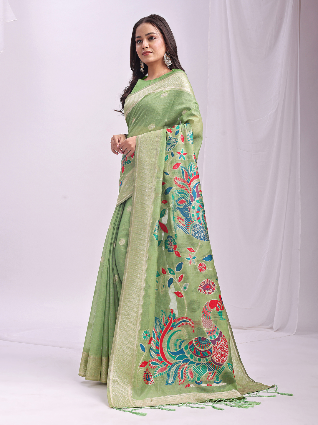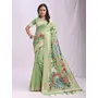 Woven Jacquard Designer Pista Color Linen Cotton Fabric Ceremonial Saree