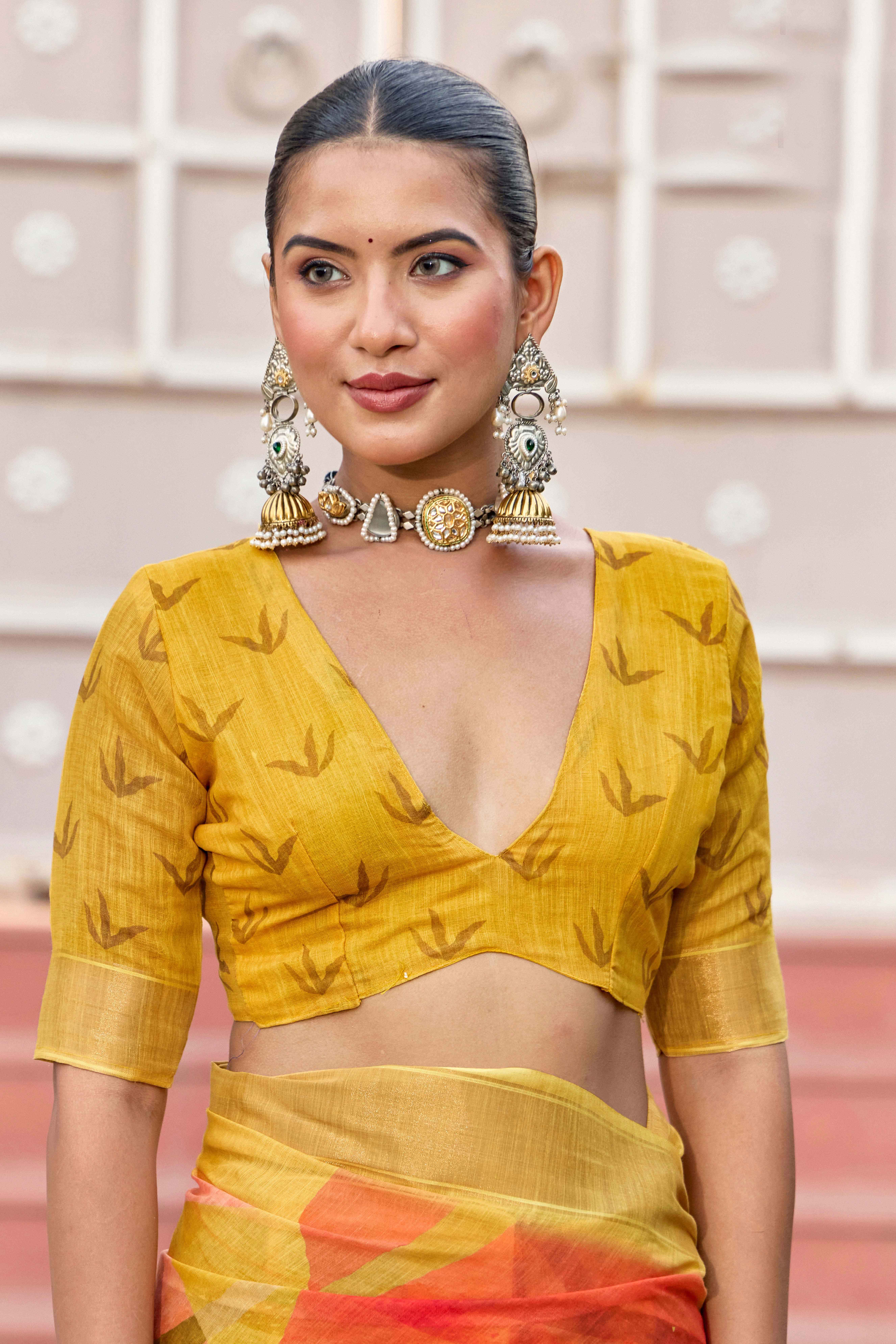 Yellow Color Beautiful Linen Silk Fabric Saree With Sophisticated Partywear Saree