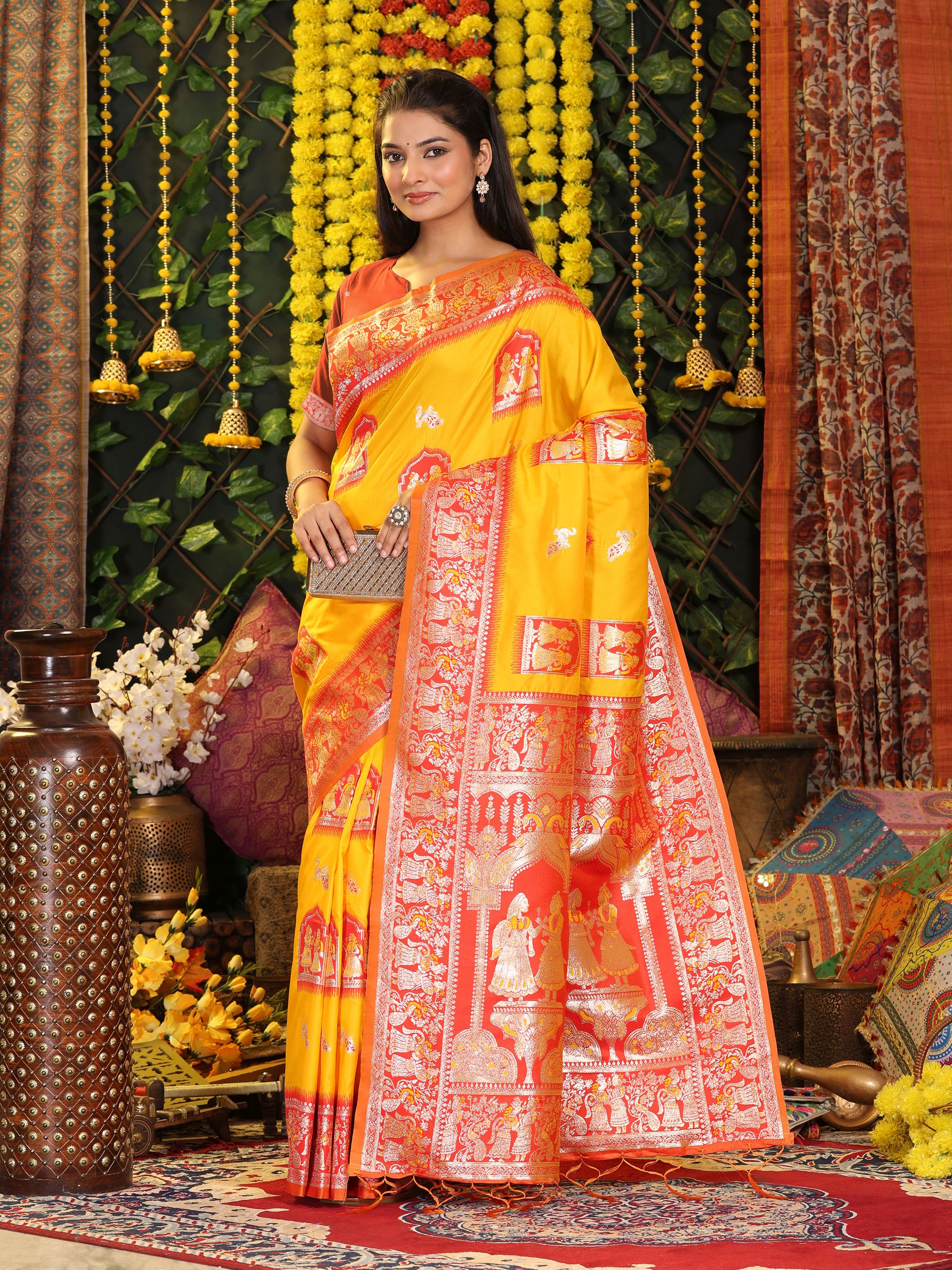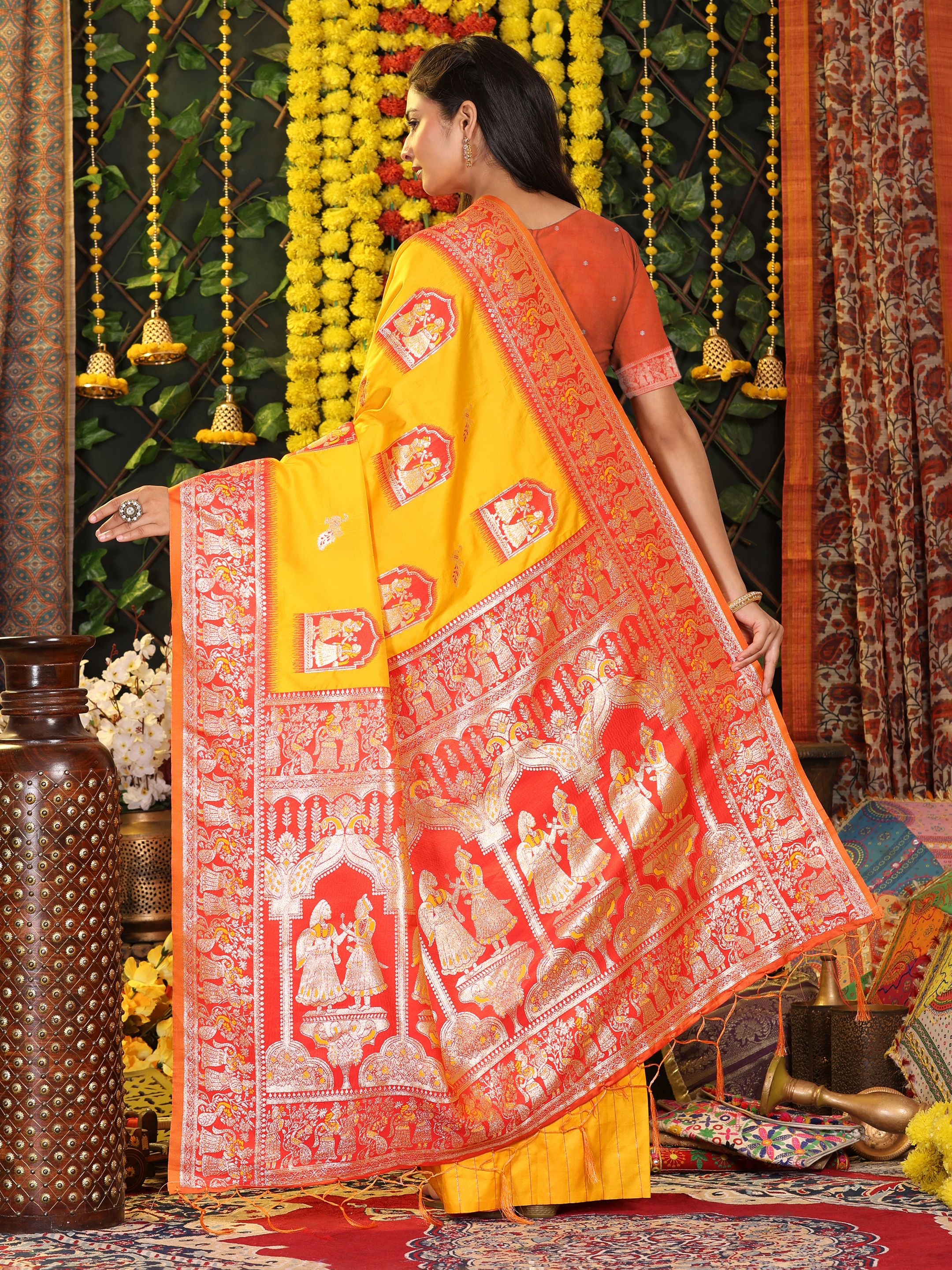 Yellow Color Blended Silk Fabric Woven Jari Designer Saree