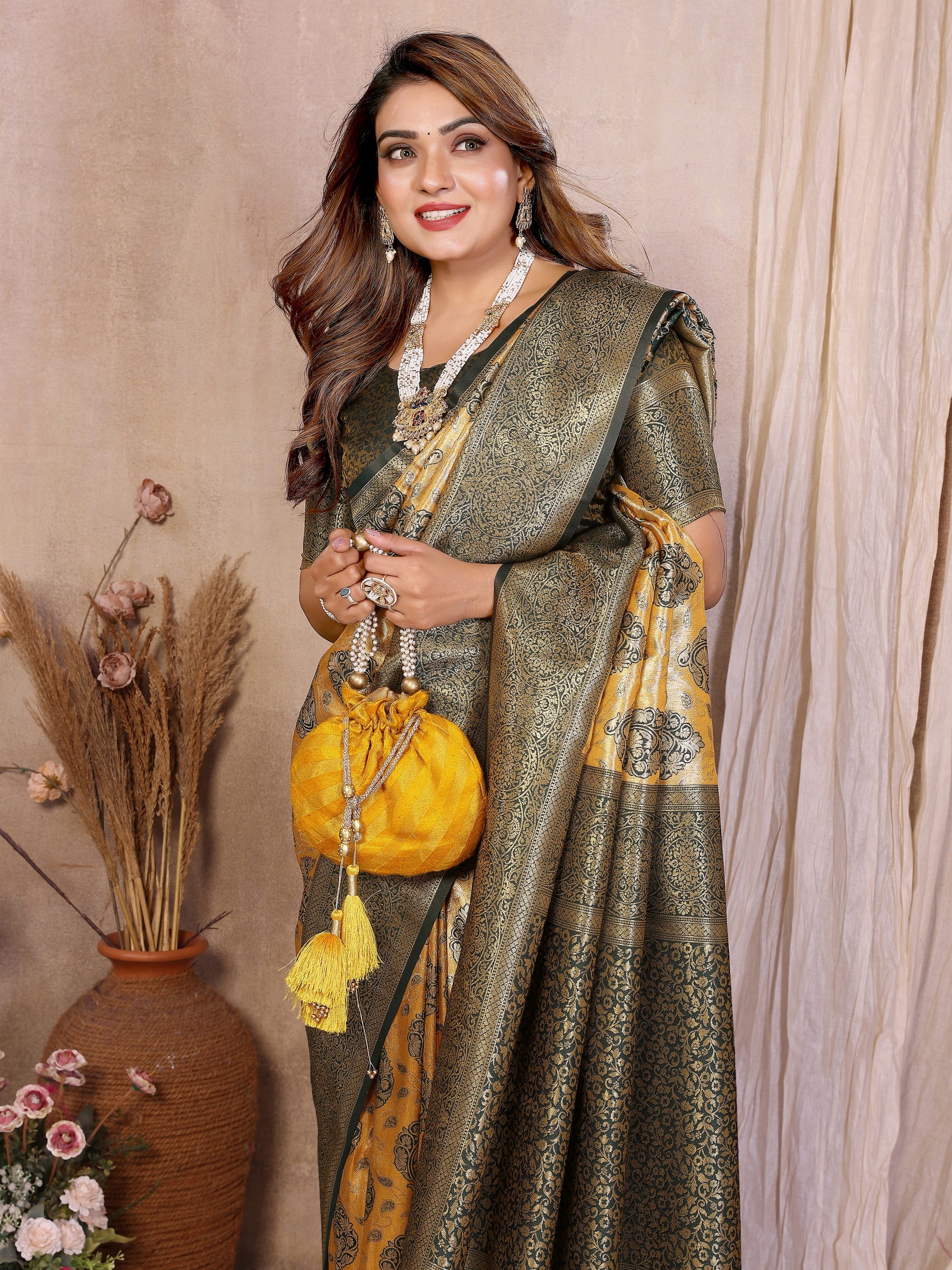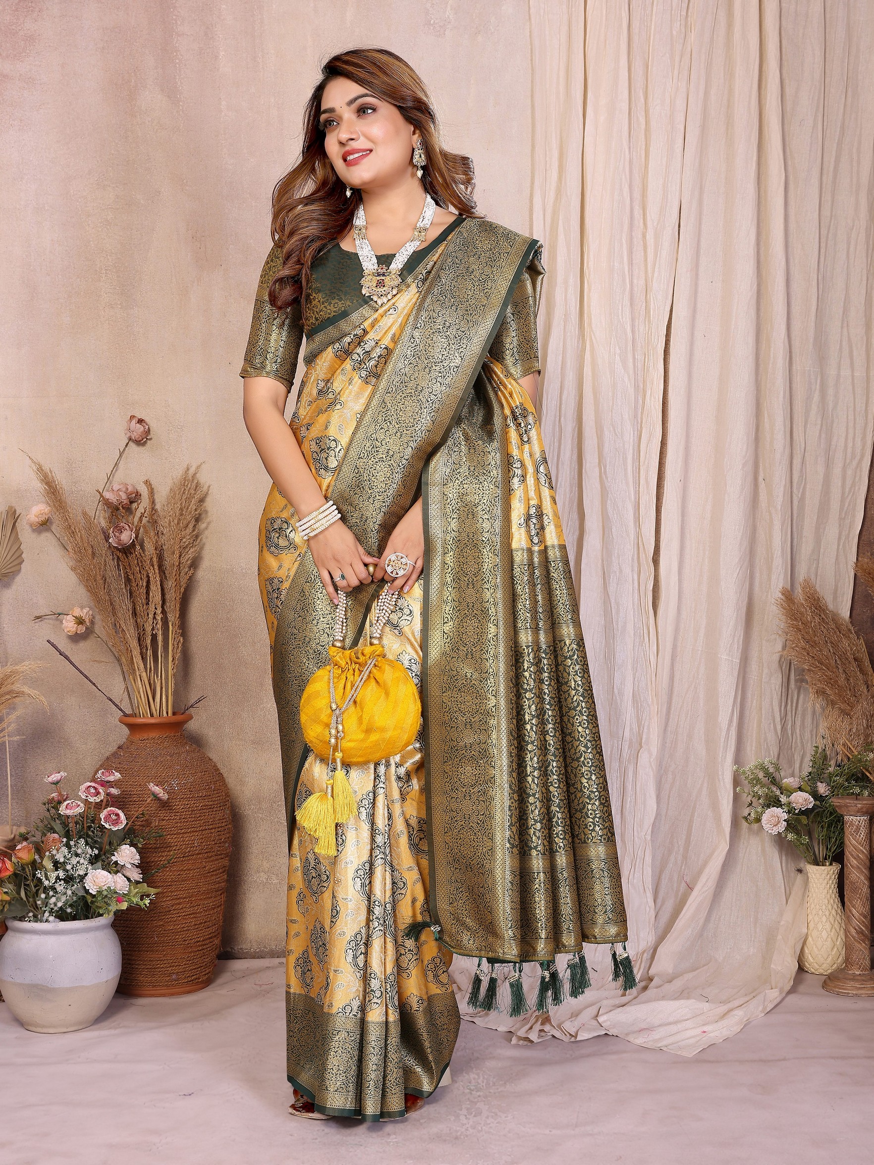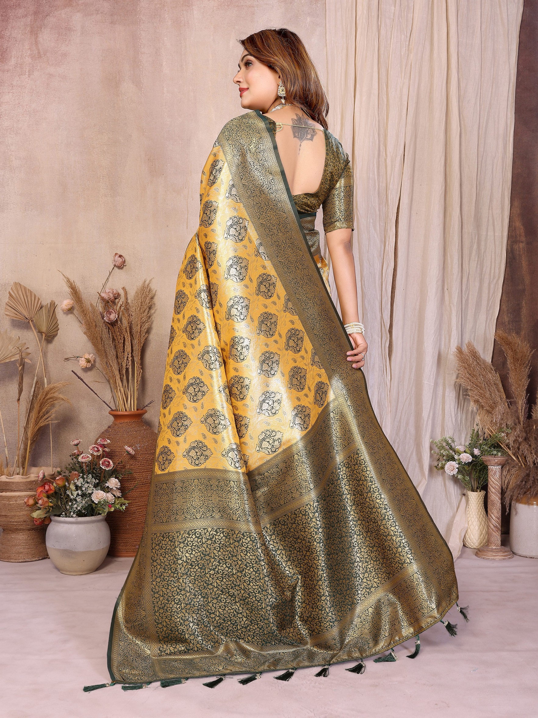 Yellow Color Heavy Rich Banarasi Tissue Silk For Ceremonial Traditional Looks