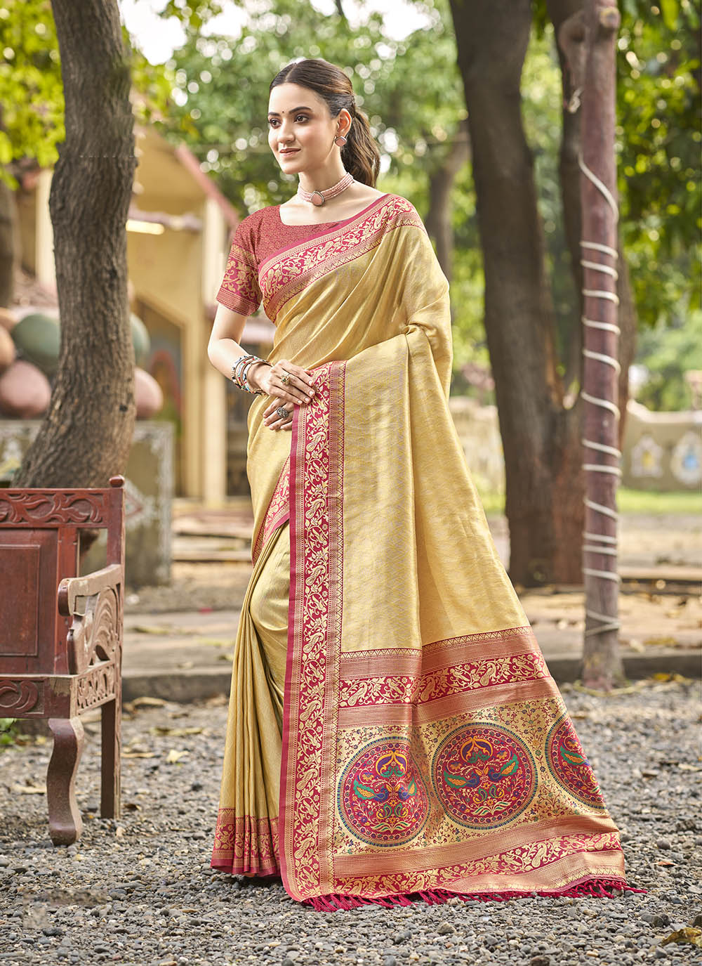 Yellow Color Kanjivaram Silk Fabric Designer Ethnic Festive Wear Saree