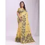 Yellow Color Linen Cotton Fabric Wevon Thread Designer Festive Sophisticated Saree