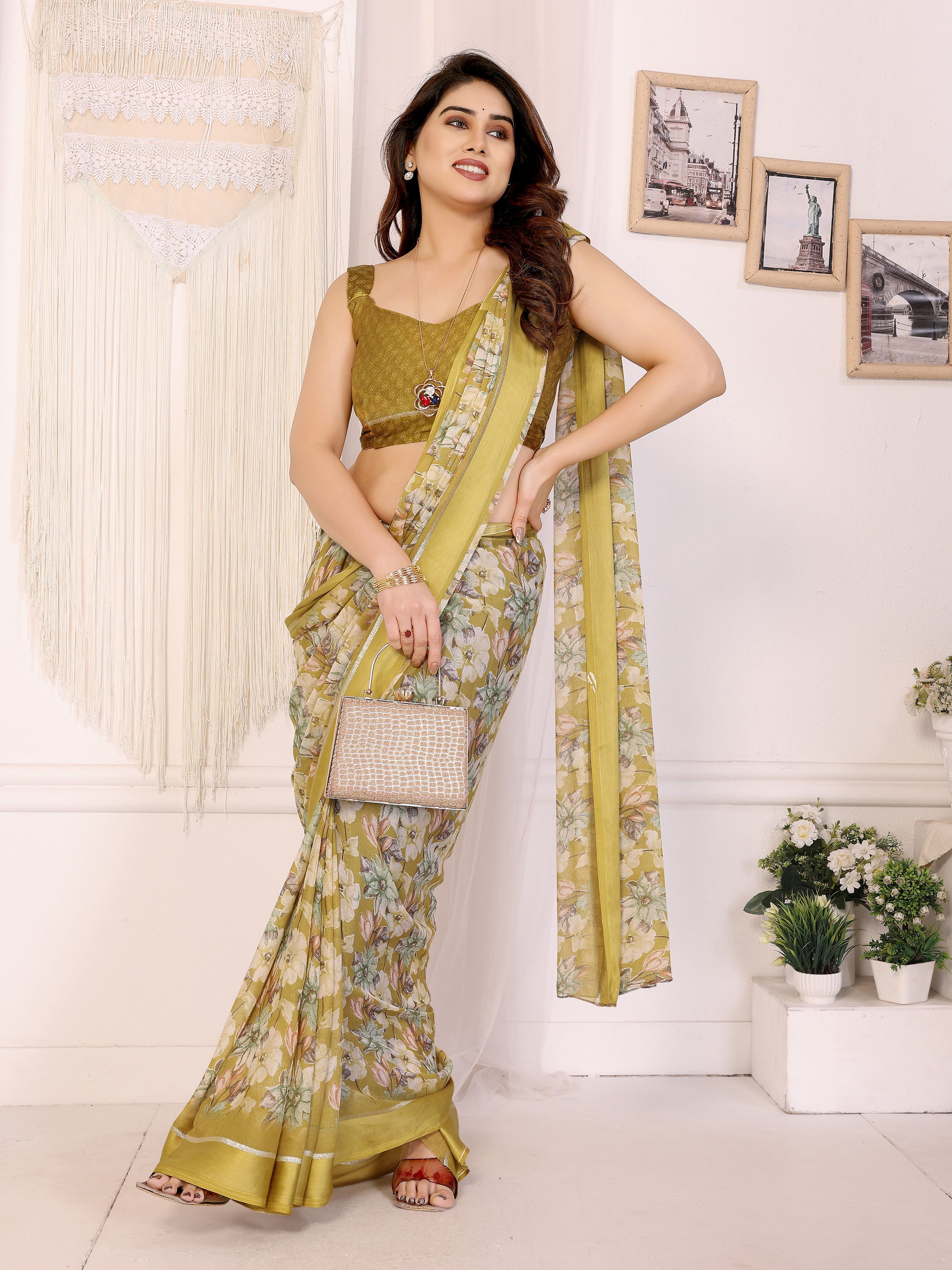 Attrective These Party Wear Saree in Fine Colored.These Saree Are Moss Satin Patta And Blouse is Moss Satin Patta Fabricated.Its Beautified With Designer Flower Printed.