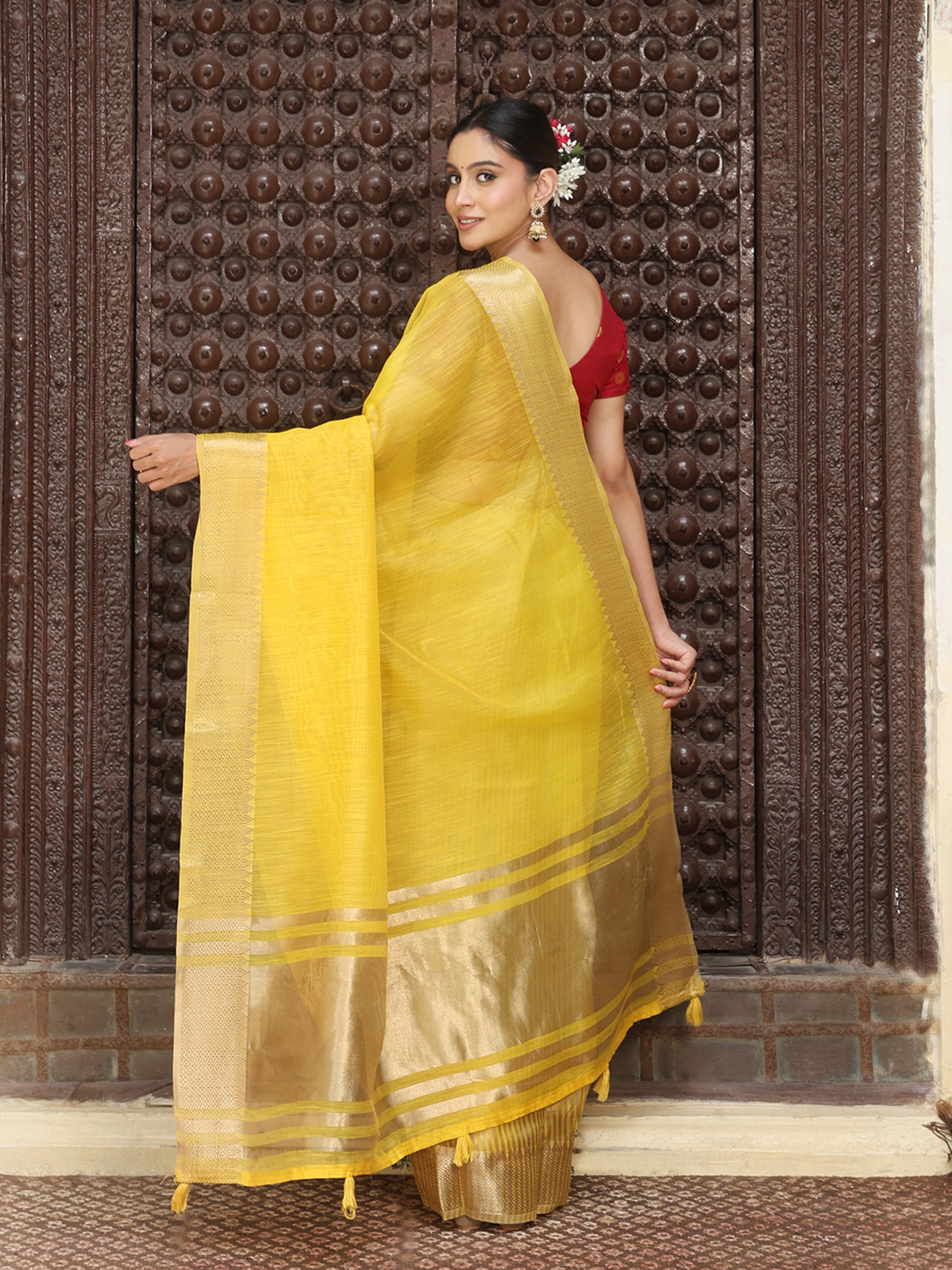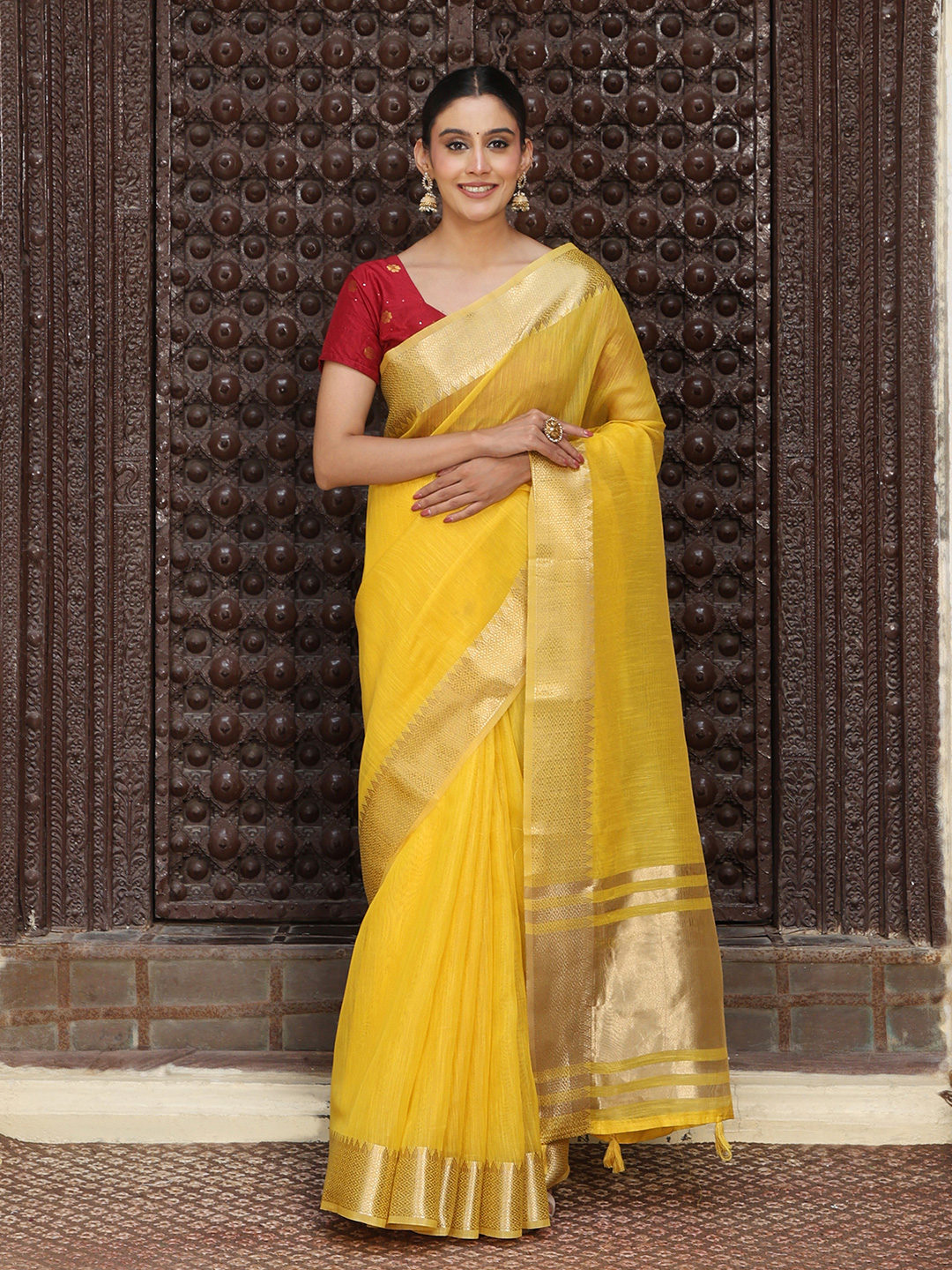 Yellow Color Rich Ethnic Cotton Based Saree with Rich Woven Designer Looks