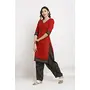 Beautiful suit look pretty like never before. Wearing this Red color suit which made from crepe with black coloured crepe Patiala bottom and multicolour coloured chiffon dupatta. Suit has also decorative work like printed. This beautiful suit features a classy printed work all over which makes it a smart pick for all occasions. You can wear this suit in different styles. You can wear it occasionally or casually.