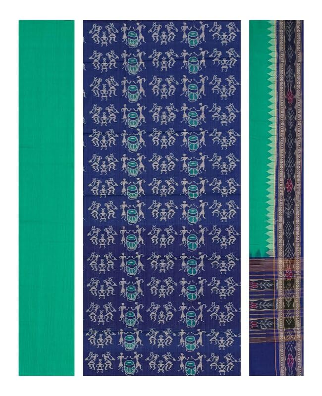 SAMBALPURI BANDHA CRAFT sambalpuri cotton dress material set(Bajabala and nartaki design in blue and ramagreen colors combination)