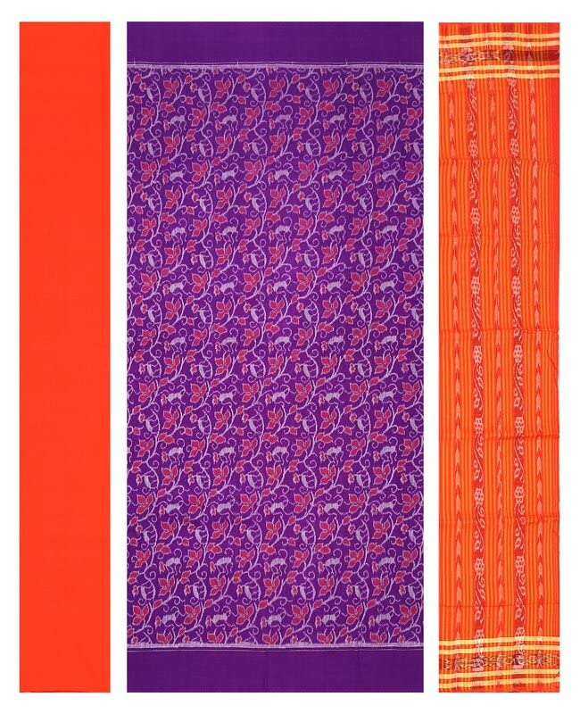 SAMBALPURI BANDHA CRAFT sambalpuri cotton dress material set(flower design in purple orange and white colors combination
