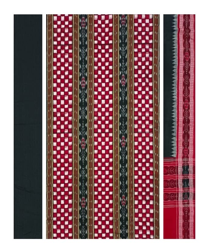SAMBALPURI BANDHA CRAFT Sambalpuri cotton dress material set(Pasapali design in Red black and white colors combination)