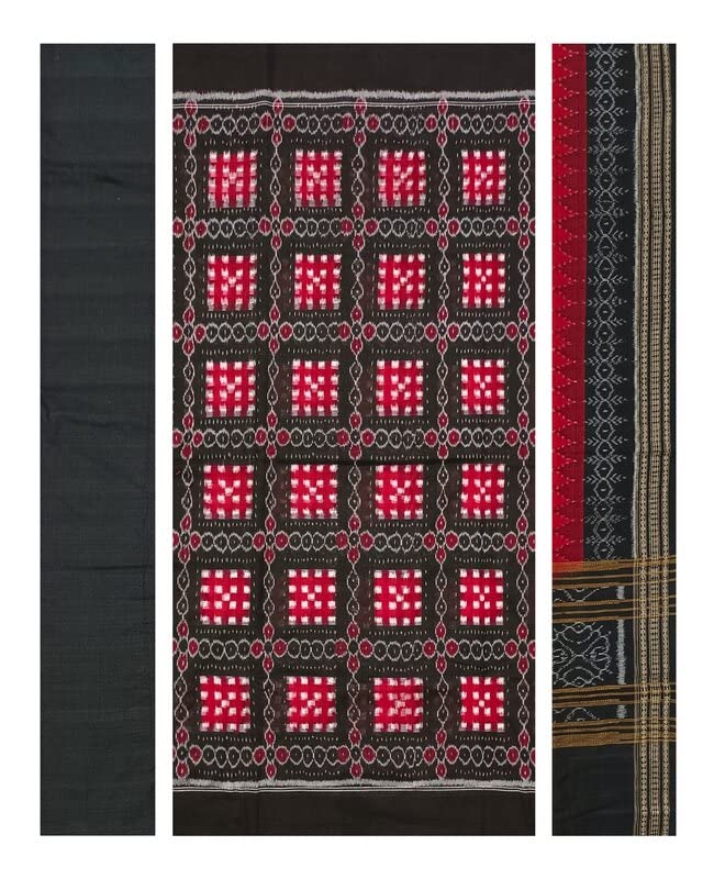 SAMBALPURI BANDHA CRAFT sambalpuri cotton dress materil set(Pasapali design in black red and white colors combination)