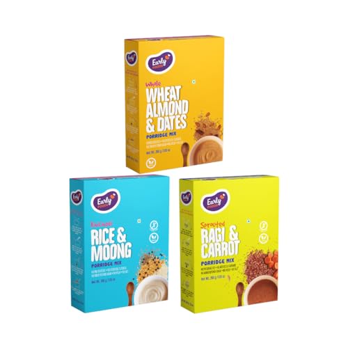 Early Foods - Combo of Porridges (Sprouted Ragi & Carrot, Rice & Moong, Wheat Almond & Date)|Vegan|Ragi malt|Cereals For Kids