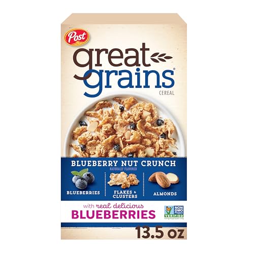Crispy multigrain flakes oat clusters wild blueberries and sliced almonds. Breakfast made right. 9 essential vitamins and minerals. Abundant wild blueberries. High in folic acid. At post we have a passion for food. We love searching for delicious and distinctive combinations of ingredients for our cereals. We select these recipes as carefully as we select the ingredients that go into them. Naturally we call our creations post selects. With real fruit nuts clusters and delicious flavour combinations Great Grains delivers taste you can see is heart healthy with whole grains and fibre and is now non-GMO project verified.