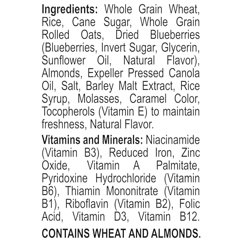 • Mix of crispy multigrain flakes oat clusters wild blueberries and sliced almonds