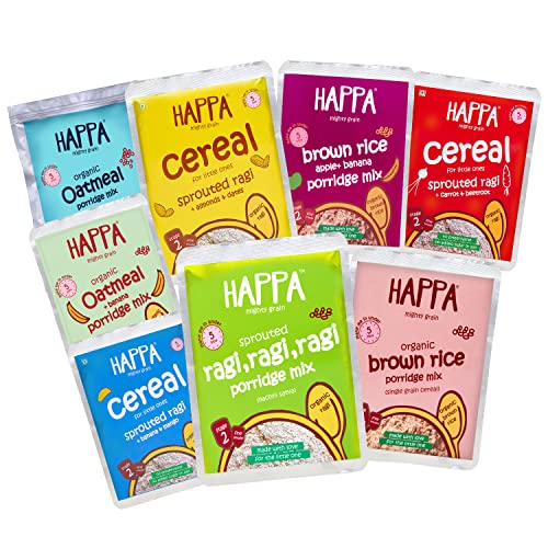Happa Baby Cereals are a perfect first food for your little one. Made with traditional recipes these cereals are crafted with care by a dad who wanted to give his baby the best start. The cereals are made with wholesome ingredients providing essential nutrients for your baby's growth and development. With a variety of options including millet brown rice oats these cereals are also free from artificial preservatives colors and sweeteners making them a healthy choice for your little one. These cereals are easy to digest and suitable for tiny tummies. Give your toddler a nutritious and delicious start to their day with Happa Baby Cereals the perfect food for the little ones.