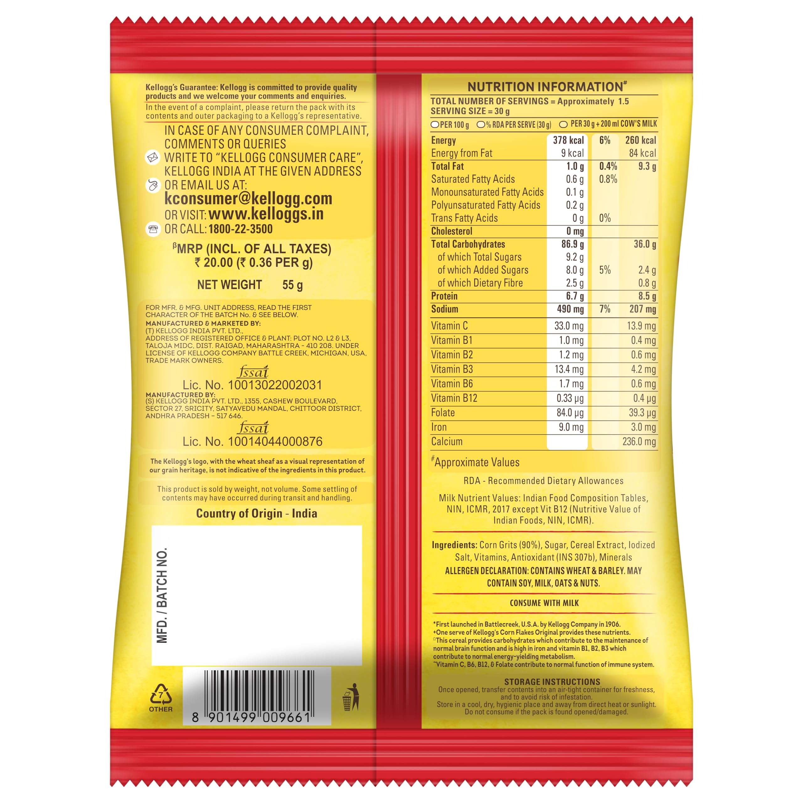 Kellogg's corn flakes cereal is a nourishing and wholesome breakfast at its very best. It is prepared from actual natural corn with iron and 8 essential vitamins containing a c and B-group vitamins it provides the balanced combination of nourishment and original corn flavour. It is a convenient breakfast option that gives energy even after 3 hours. Every bite of these crispy golden flakes is just as delicious as the first. You'll be on your way to a great day when you pour Kellogg's corn flakes cereal into your breakfast bowl.