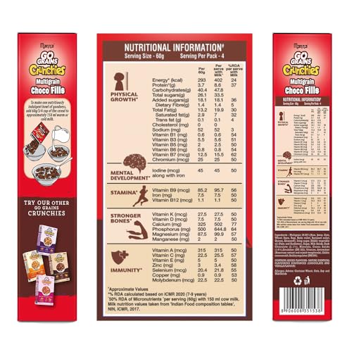12 HOUR NUTRION in EVERY BOWL Manna Choco fills is fortified with 23 Vitamins and Minerals which promote Growth & Immunity. Every bowl has 50% Required Dietary Allowance (RDA)