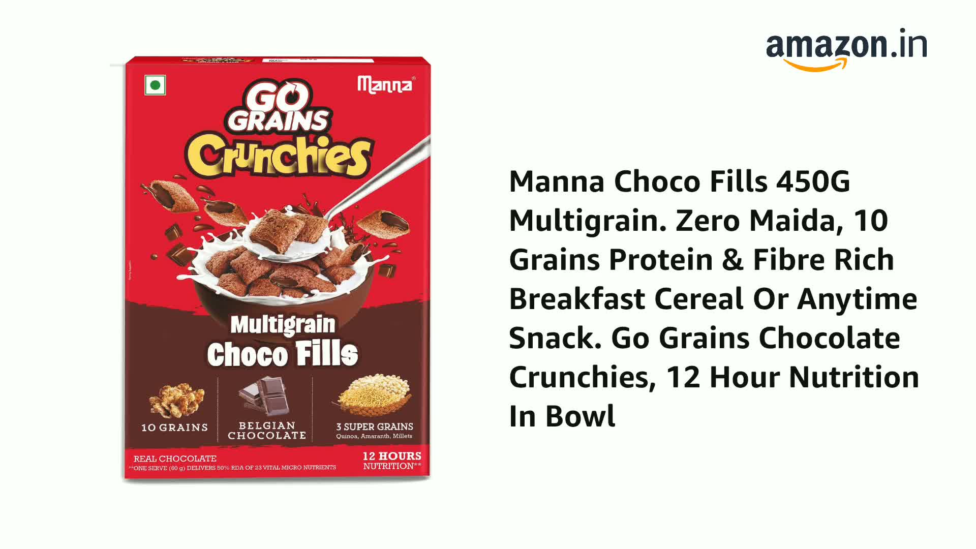 Manna Choco Fills 450G Multigrain. Zero Maida, 10 Grains Protein & Fibre Rich Breakfast Cereal Or Anytime Snack. Go Grains Chocolate Crunchies, 12 Hour Nutrition In Bowl