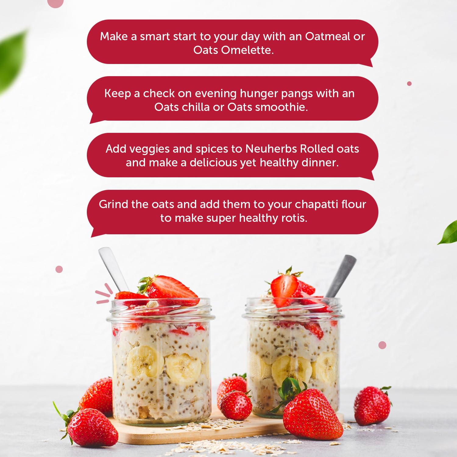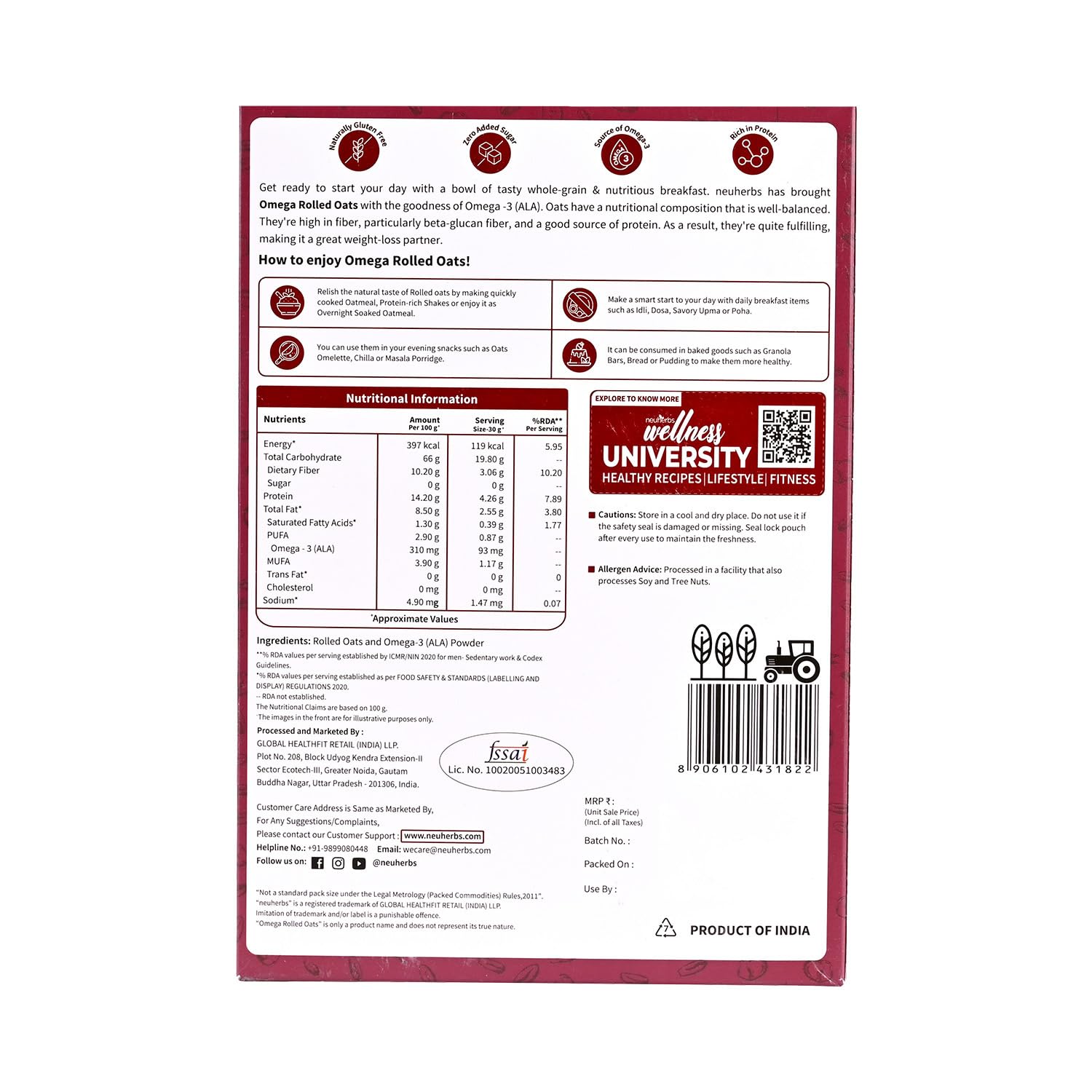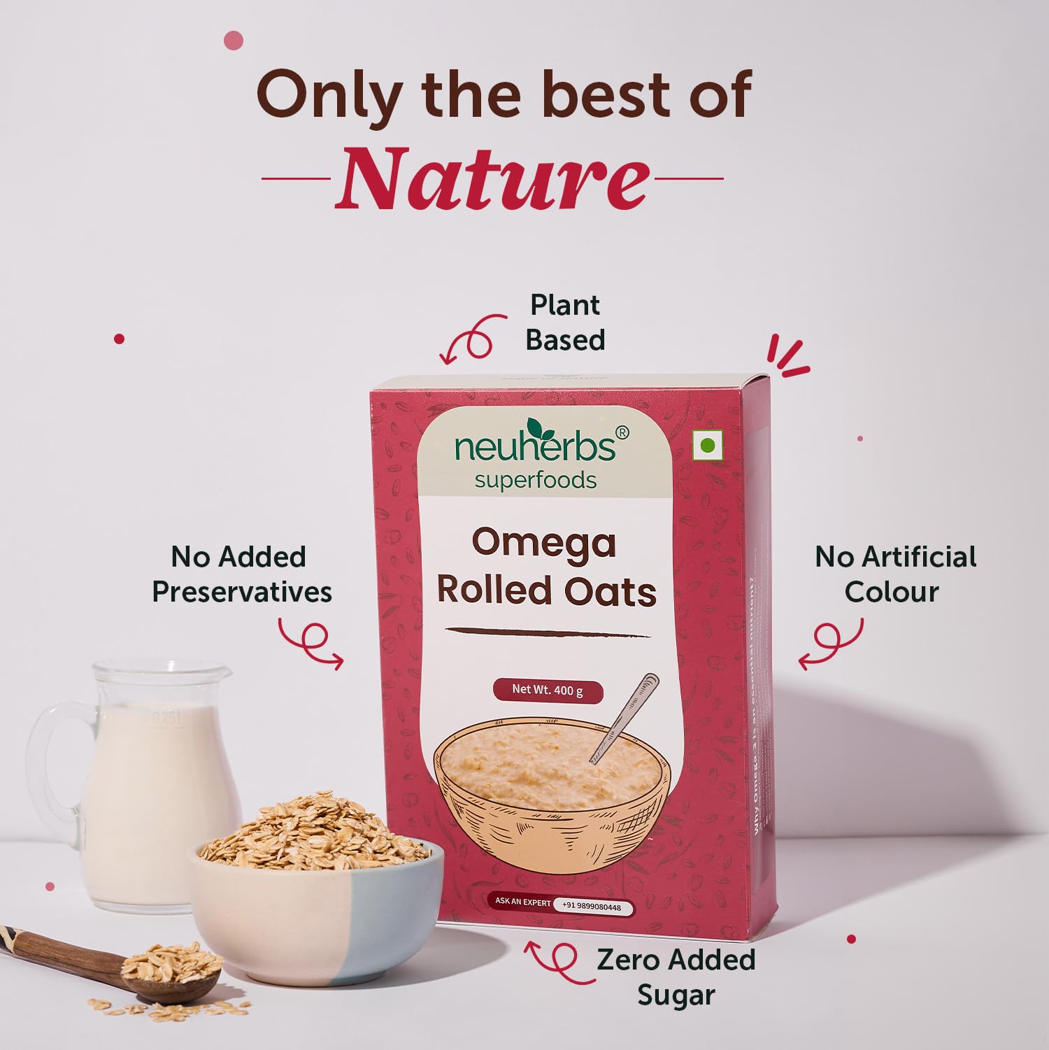 Have you ever heard about oats with omega-3 ? maybe not. But Neuherbs is here with this amazingly unique combination which will make you forget about your daily health worries. Yes Neuherbs has brought to you Natural White Rolled Oats fortified with the power of omega-3. These are not ordinary oats these are unique which can help you in managing heart health more efficiently as it is fortified with omega-3 (a healthy fat) along with naturally being low in saturated fat cholesterol & trans fat that can help you manage your heart health by helping maintain blood cholesterol levels. Also for people worrying daily about their increasing weight these natural rolled oats are a good source of protein & fiber with no added sugar that can work as your daily nutritious breakfast or mid-meal partner which can help you in achieving weight loss goals. Neuherbs rolled oats are natural & naturally gluten free so give your day a healthy kick-start with a bowl of nutrition.