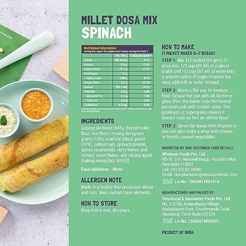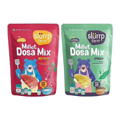 Slurrp Farm Millet Dosa Instant Mix, Supergrains Spinach and Beetroot, Natural and Healthy Food, 10.5Oz (Pack of 2)