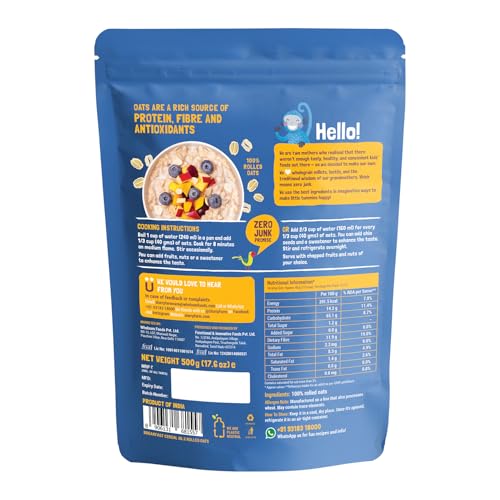 Slurrp Farm Rolled Oats, 100% Natural Wholegrain, High Protein & Fiber, Healthy Food with No Added Sugar, Breakfast Cereal, Healthy Snack, Dalia Porridge, 500g
