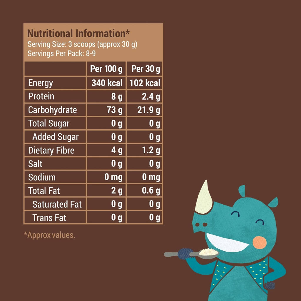 Slurrp Farm Sprouted Ragi Cereal For Little onesSlurrp Farm Sprouted Ragi is a gluten-free grain that is great for growing bones and cooks in just 2 minutes. Ragi has 10 times the calcium of wheat and rice and 3 times the calcium of milk. This ragi is sprouted for enhanced nutrition.Ingredients:100% Sprouted Ragi.How to make:Boil drinking water for 5 minutes to ensure it is disinfected.Add 150 ml water or milk into a pan.Add 3 level scoops (30 gms) of Sprouted Ragi Powder.Stir and cook for 2 minutes.Serve immediately.Legal Disclaimer: Product images are for illustrative purposes only. Images/packaging/ labels may vary from time to time due to changes made by the manufacturer's manuf