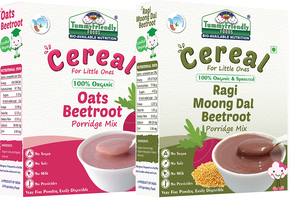 TummyFriendly Foods Certified 100% Organic Oats, Beetroot and Organic Sprouted Ragi, MoongDal, Beetroot Porridge Mixes , Made of Organic Oats & Organic Sprouted Ragi for Baby, Rich in Beta-Glucan, Calcium, Iron, Protein, Fibre & Micro-Nutrients ,200g Each, 2 Packs Cereal (400 g, Pack of 2)