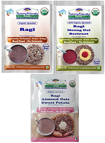 TummyFriendly Foods Certified Ragi Porridge Mixes - Stage1, Stage2, Stage3 | Rich in Calcium, Iron, Fibre & Micro-Nutrients |3 Packs, 50g Each Cereal (150 g, Pack of 3)