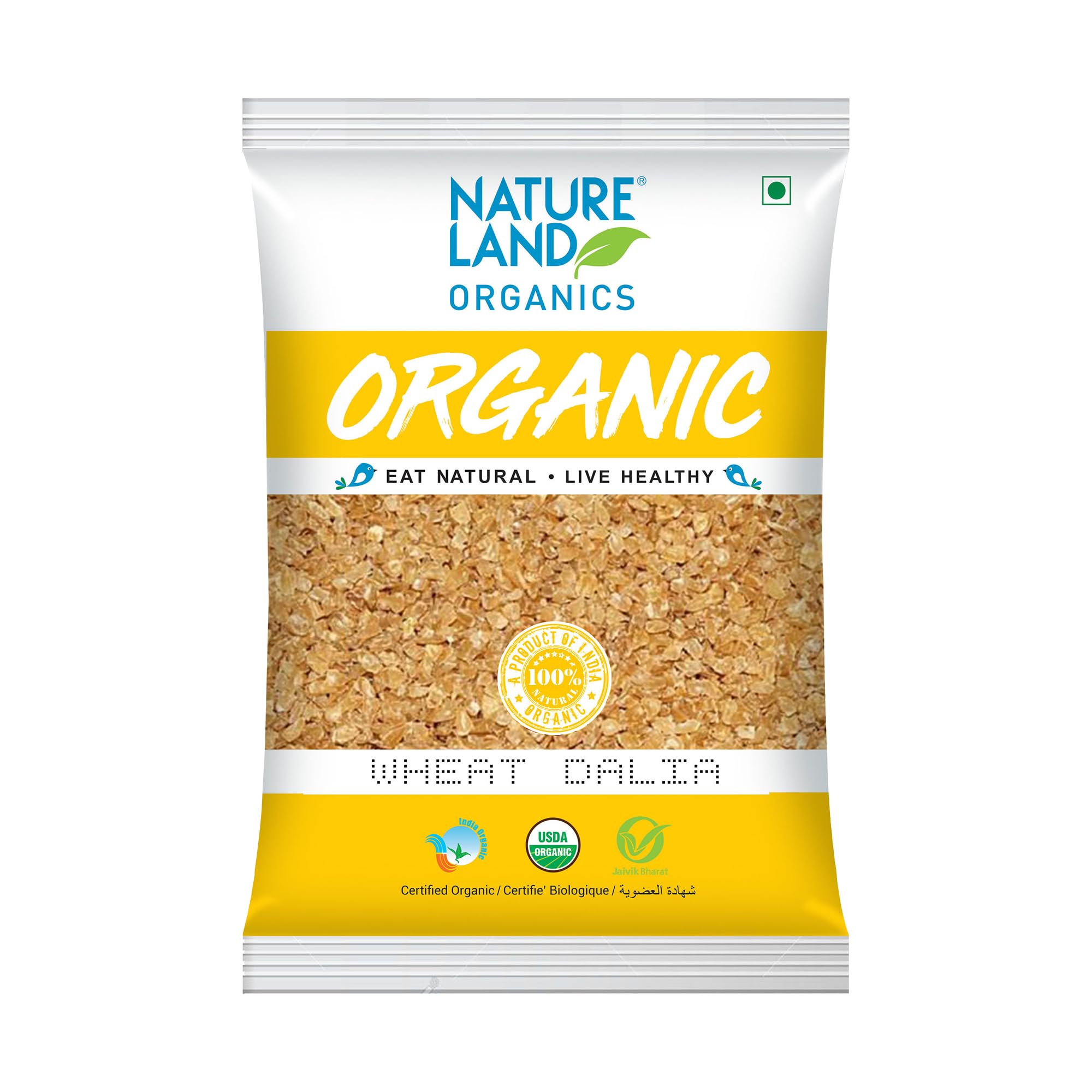 Wheat Dalia is high in protein and low in fat and calories it offers you nutrients without adding pounds to your body. Natureland Organic foods wheat porridge/Dalia/broken wheat is processed from premium grade of wheat which is pounded coarsely using hammer method where it is only pounded and not grinded to ensure fine and even granules. This Dalia is packed with nutrients fiber and manganese and has a natural taste flavor and aroma.