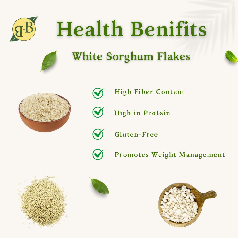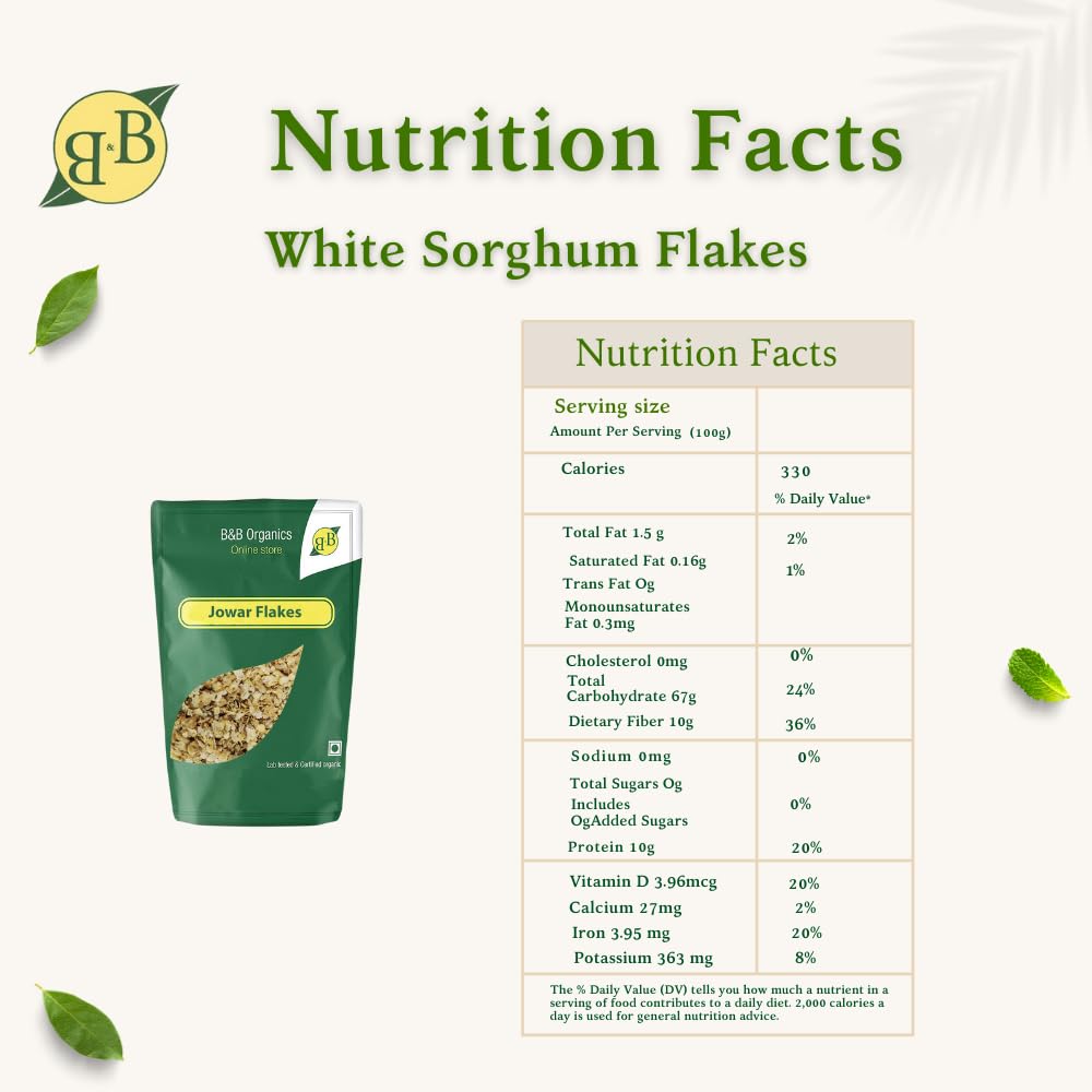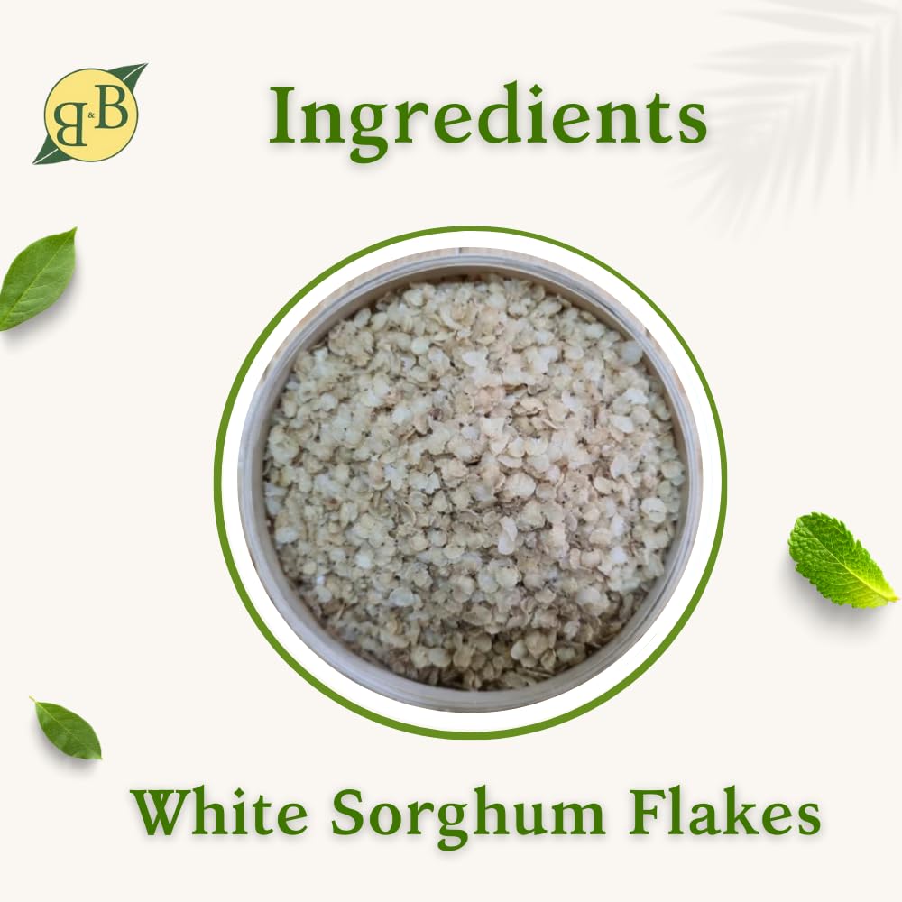 B&B Organics Jowar Flakes (500 grams)/ Certified Organic/ Cholam Aval/Preservative Free Poha
