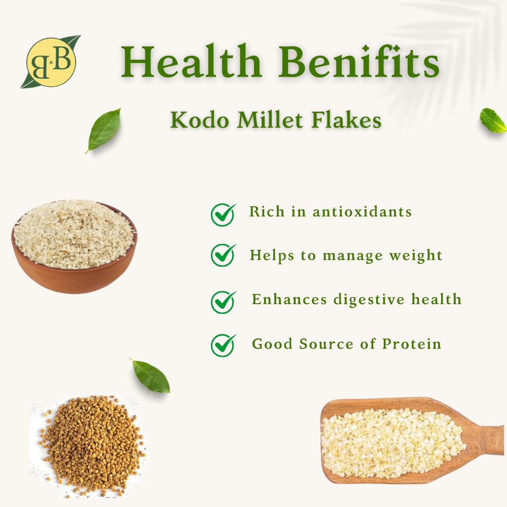 • ENERGY POWERHOUSE: Kodo millet flakes are a powerhouse of proteins vitamins minerals and fibre ideal for all age diets.