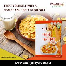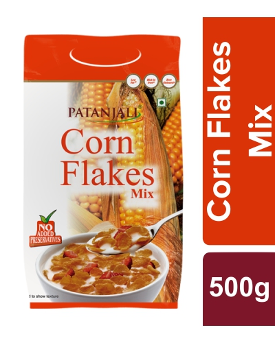 Patanjali Corn Flakes Mix are a popular breakfast cereal made by toasting flakes of corn which has all required essential vitamins and nutrients. it is low in fat, rich in iron and has zero cholesterol.Patanjali corn flakes are very good source of vitamins, minerals, folate, dietary fiber, as well as proteins, and carbohydrates.Patanjali Corn flakes are very rich in thiamine. Thiamine is good for carbohydrate metabolism, energy production and cognitive functions.Fiber helps to reduce cholesterol, constipation and the risk of colon cancer.Patanjali corn flakes are Very low in saturated fat and a gives a good satiety.Patanjali Cornflakes are very high source of iron content Iron, high iron diet is needed to maintain healthy blood level and help to keep the brain alert.Corn FlakesCorn GritSugarIodised SaltMalt ExtractBHA