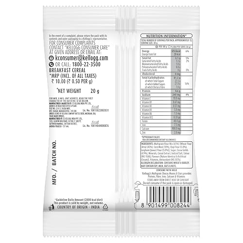 HomeGroceryHealthy BreakfastFlakesKellogg's Chocos Moons & Stars with Whole Grain 24g (Pack of 16) | High in Calcium & Protein 10 Essential Vitamins & Minerals Source of Fibre | Breakfast Cereal for Kids | 384g