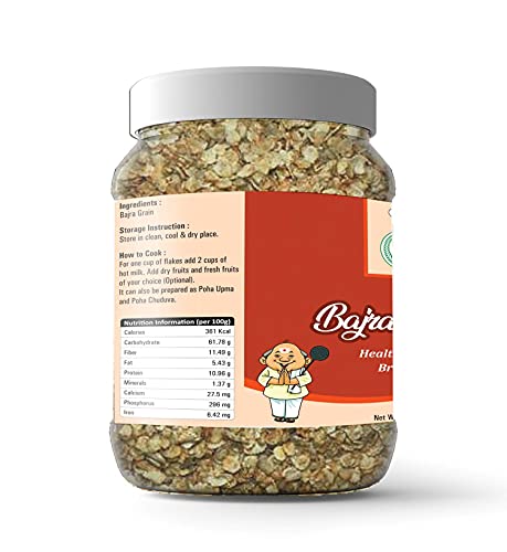 A tastier & healthier alternative to Oats Cornflakes and Wheat Flakes. Use with Milk make Poha and snacks. Agri Club Bajra Flakes is a delicious wholesome Millet breakfast for your mornings. A climate-smartrain rich in minerals like Iron Complex Carbohydrates Dietary fiber and known to fight lifestyle diseases. Regular consumption will make your skin healthy and boost your immune system. Enjoy theoodness of Bajra with Health Sutra Bajra Flakes.