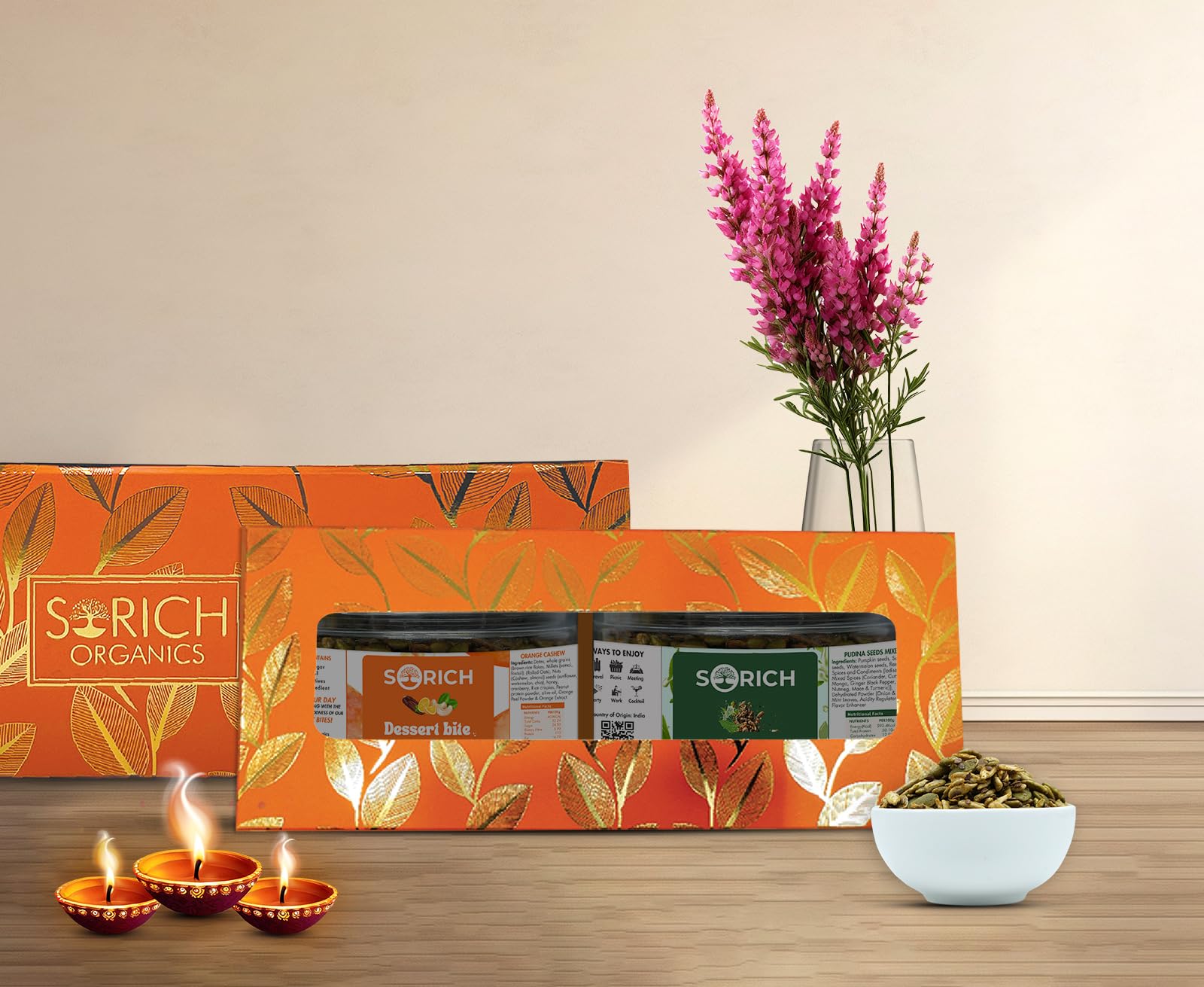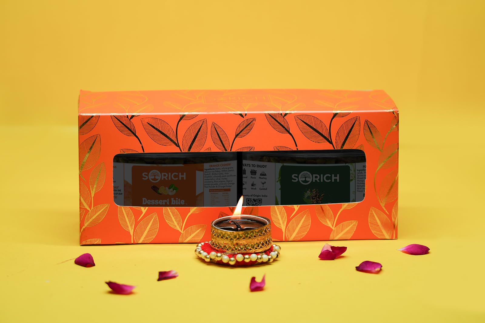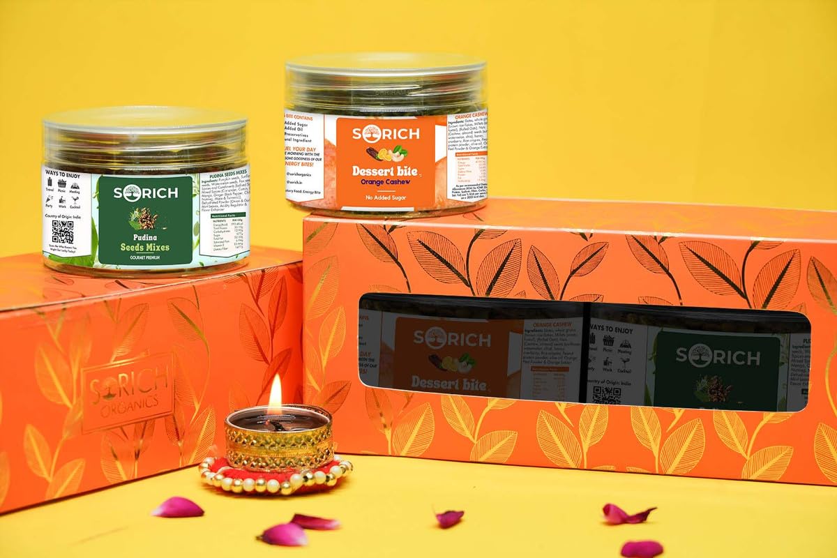 Healthy Treat Grand Diwali Gift Hamper | Orange Cashew Bar 150 Gram | Pudina Treat Seeds Mix 150 Gram For Diwali Gift Hamper Dry Fruit Diwali Gift Box | Wholesome Corporate Gifting | Diwali Gifts For Family and Friends