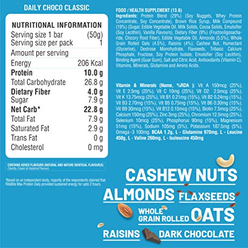 HomeGroceryHealthy BreakfastHealth BarRiteBite Max Protein Daily Assorted Protein Bars with 10g Protein, 5g Fiber & 21 Vit. & Minerals | 0 Added Sugar, No Cholesterol & Trans Fat For Upto 2h of Energy, Healthy Snack, 50g (Pack of 6)