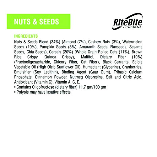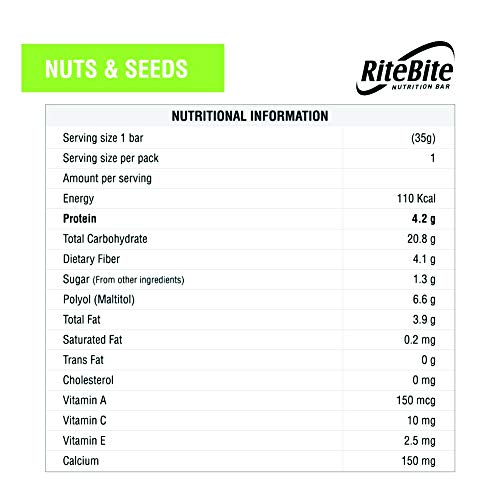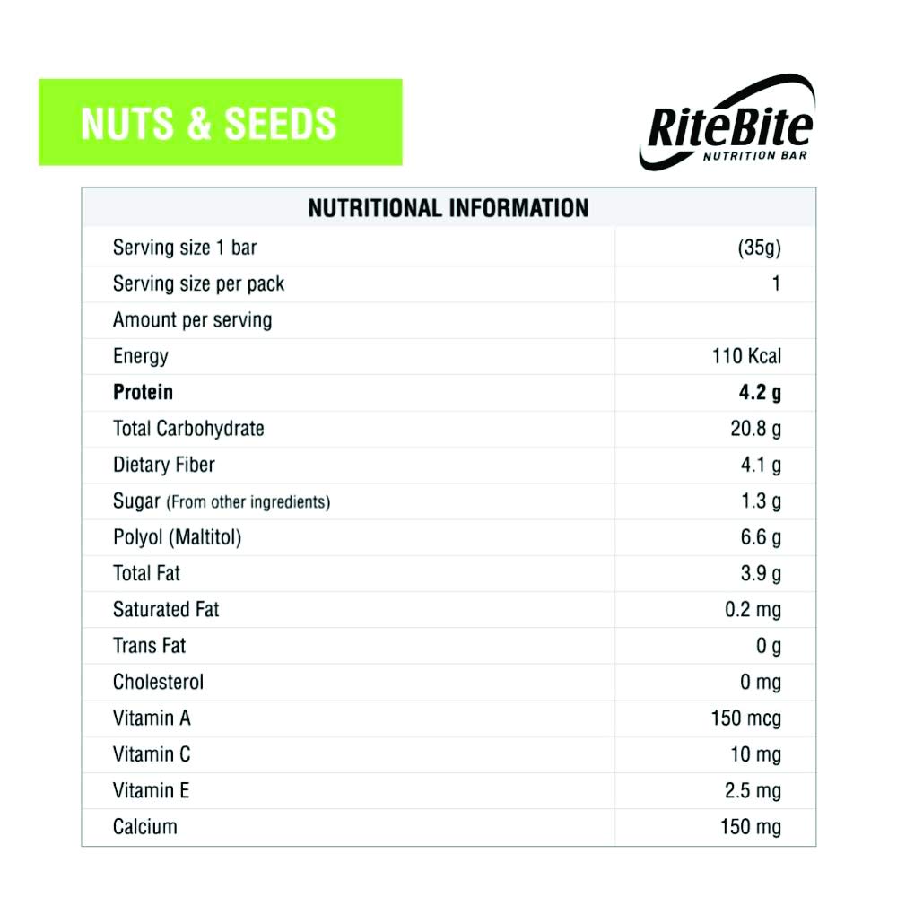 With every bite of the RiteBite nuts & seeds bar you will enjoy an exciting blend of rich and natural ingredients like cashew nuts pumpkin seeds almonds and much more. You can binge on it whenever you crave for a nutty snack.