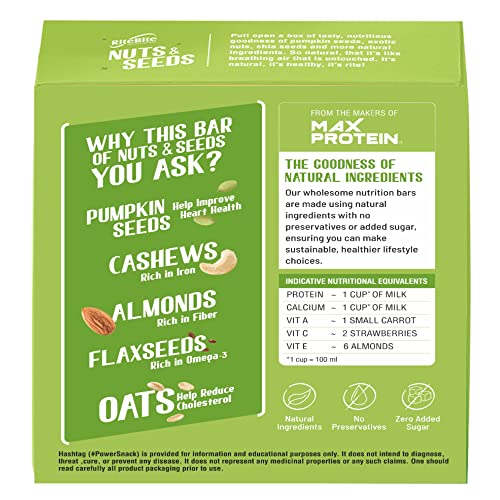 HomeGroceryHealthy BreakfastHealth BarRiteBite Max Protein Nuts & Seeds Nutrition Bar with Flax Seeds, Pumpkin seeds | 0 Added Sugar, No Cholesterol & Trans Fat Snack Bar, 35g (Pack of 6)