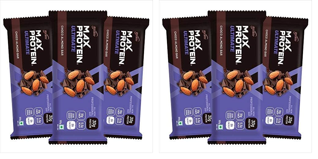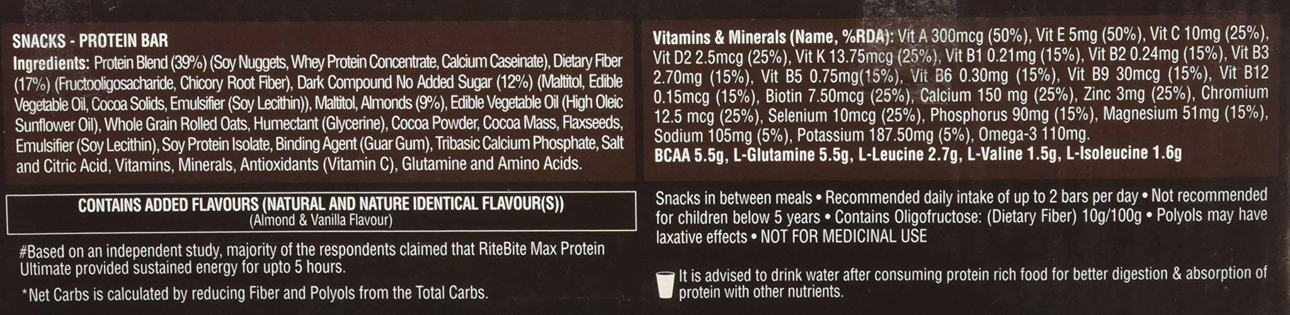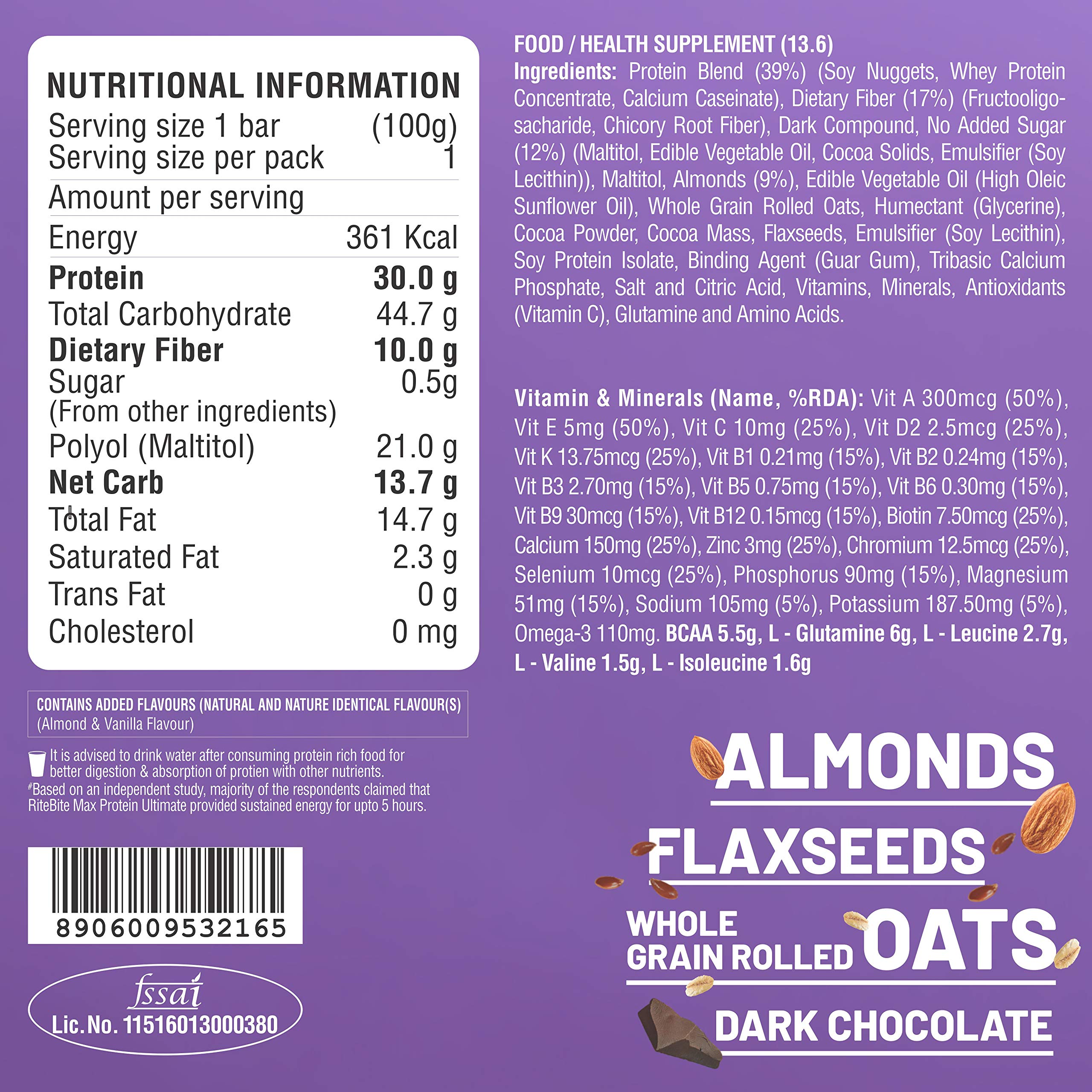 RiteBite Max Protein Ultimate Choco Almond Protein Bars With 30G Protein 10G Fiber & 21 Vit. & Minerals | 0 Added Sugar No Cholesterol & Trans Fat For Upto 5H Of Energy 100G (Pack Of 6) 300 Gram