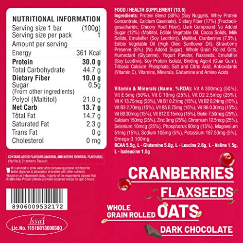 Make your workouts unstoppable with Max Protein Ultimate Choco Berry bar. It is the perfect workout fuel that keeps you energized throughout your routine. Made with the blend of whey and soy protein this bar helps you elevate your everyday performance when you work out. And to top it off it even helps in repairing your muscles so you swiftly blaze through every session.