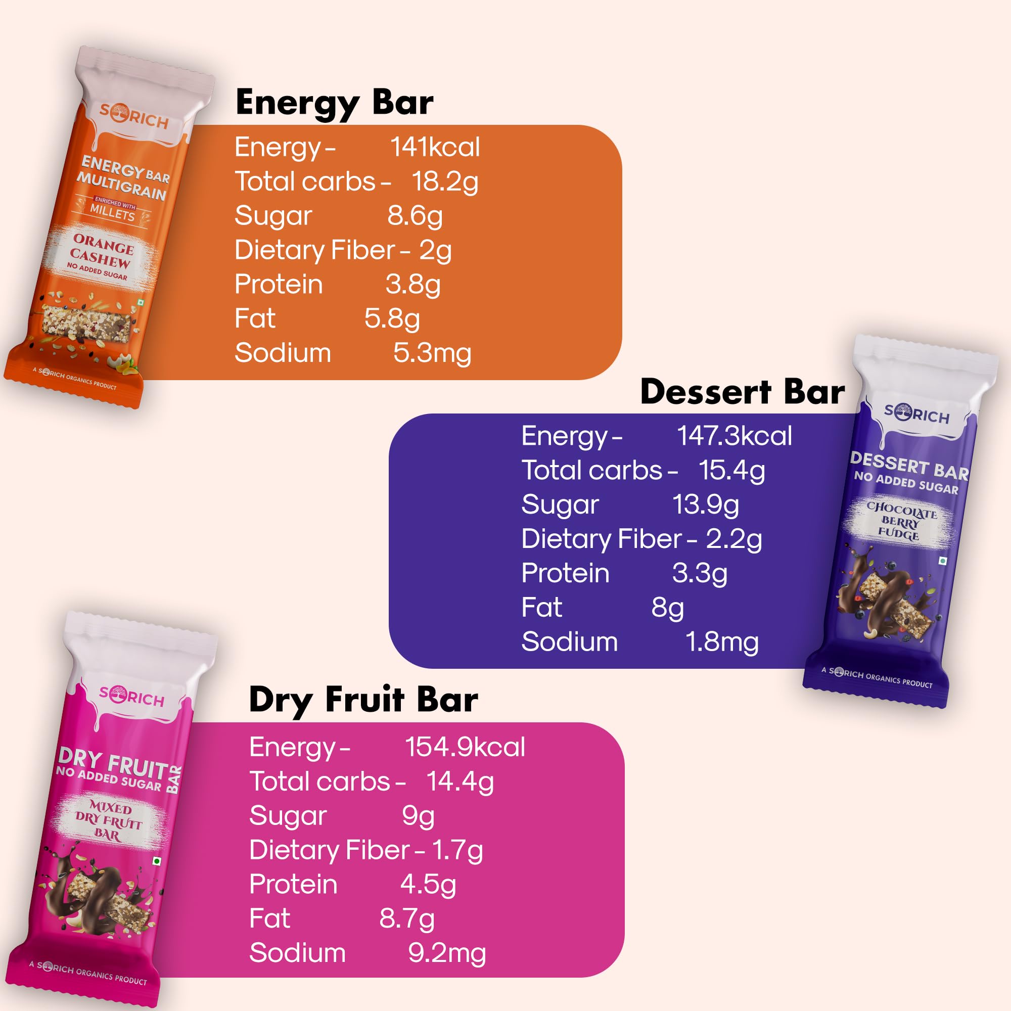 Craving for something sweet? We have got you covered! Fuel your day with the goodness of Dessert Bar whenever you need it with these easy-to-enjoy energy bars! Munch on these while on the move & you can get a full soul-satisfying experience & all the nutrition you need. Sorich Organics Dessert Bar has powerful ingredients to keep you satiated for longer tasty & delicious bar that is crunchy for a delightful quick meal & snacking experience. Just take a pack of Dessert Bar on the go for a quick & healthy snack that will fuel up your day!