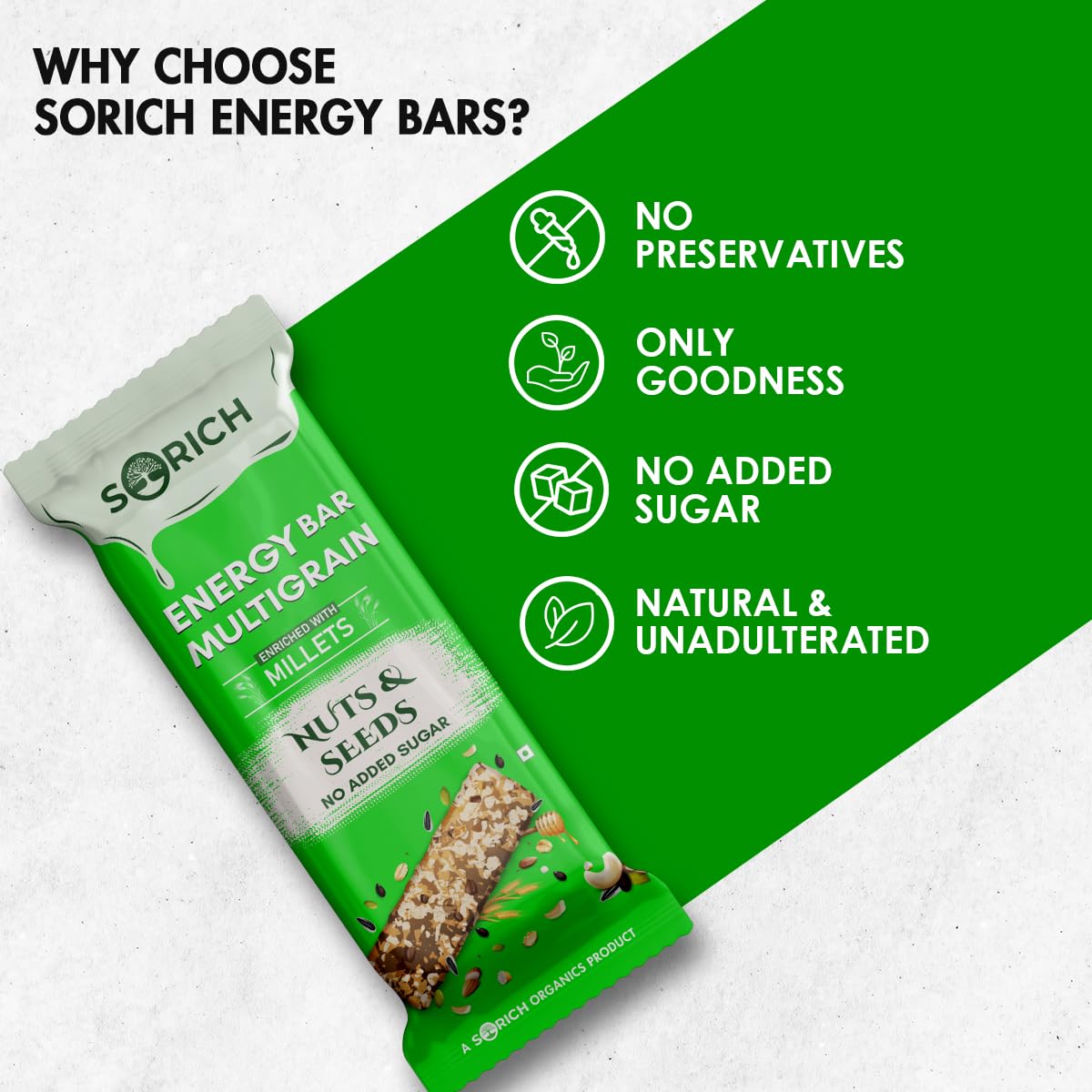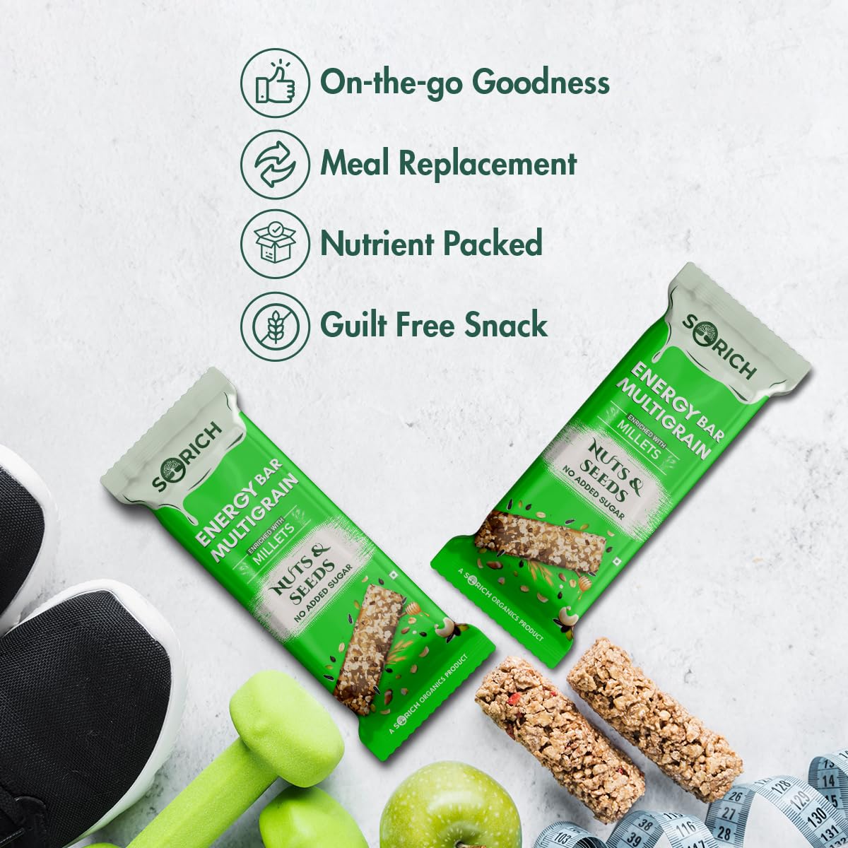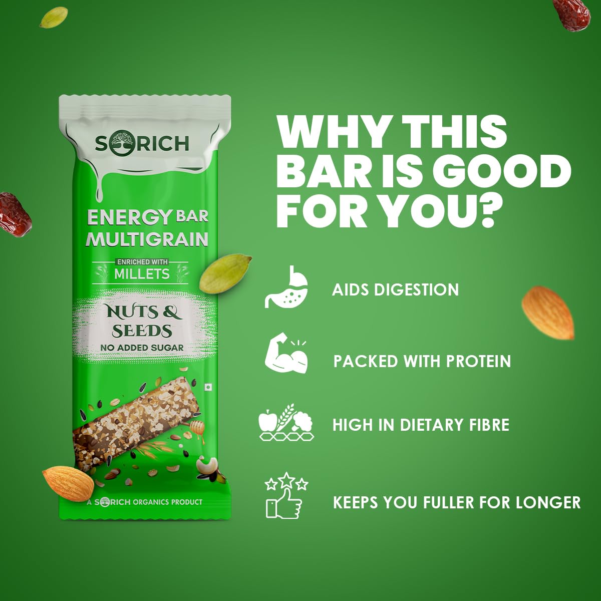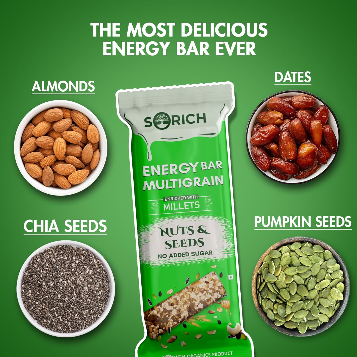 Sorich Organics Multigrain Nut & Seeds Bars Energy Bars Pack Of 6 * 35 (210 Gm)|Healthy Diet & No Added Sugar | Dates Oats With Dry Fruits | Nuts Brown Rice & Millets | With Chia & Dates Seeds