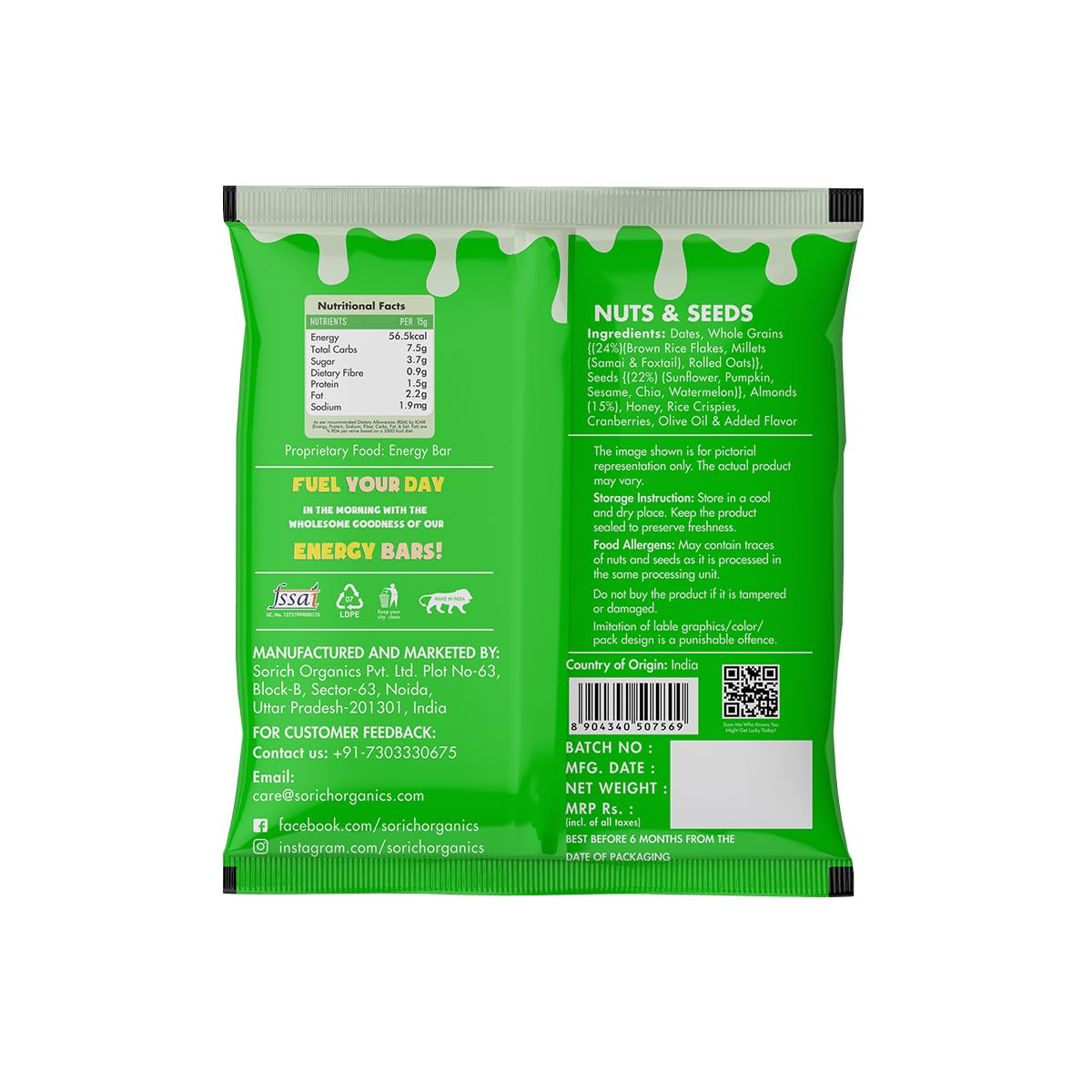 Sorich Organics Multigrain Nut & Seeds Energy Bars Mini Pack of 32 * 15 (480 Gram) | Healthy Diet & No Added Sugar | Dates Oats With Dry Fruits | Nuts Brown Rice & Millets | With Chia & Dates Seeds