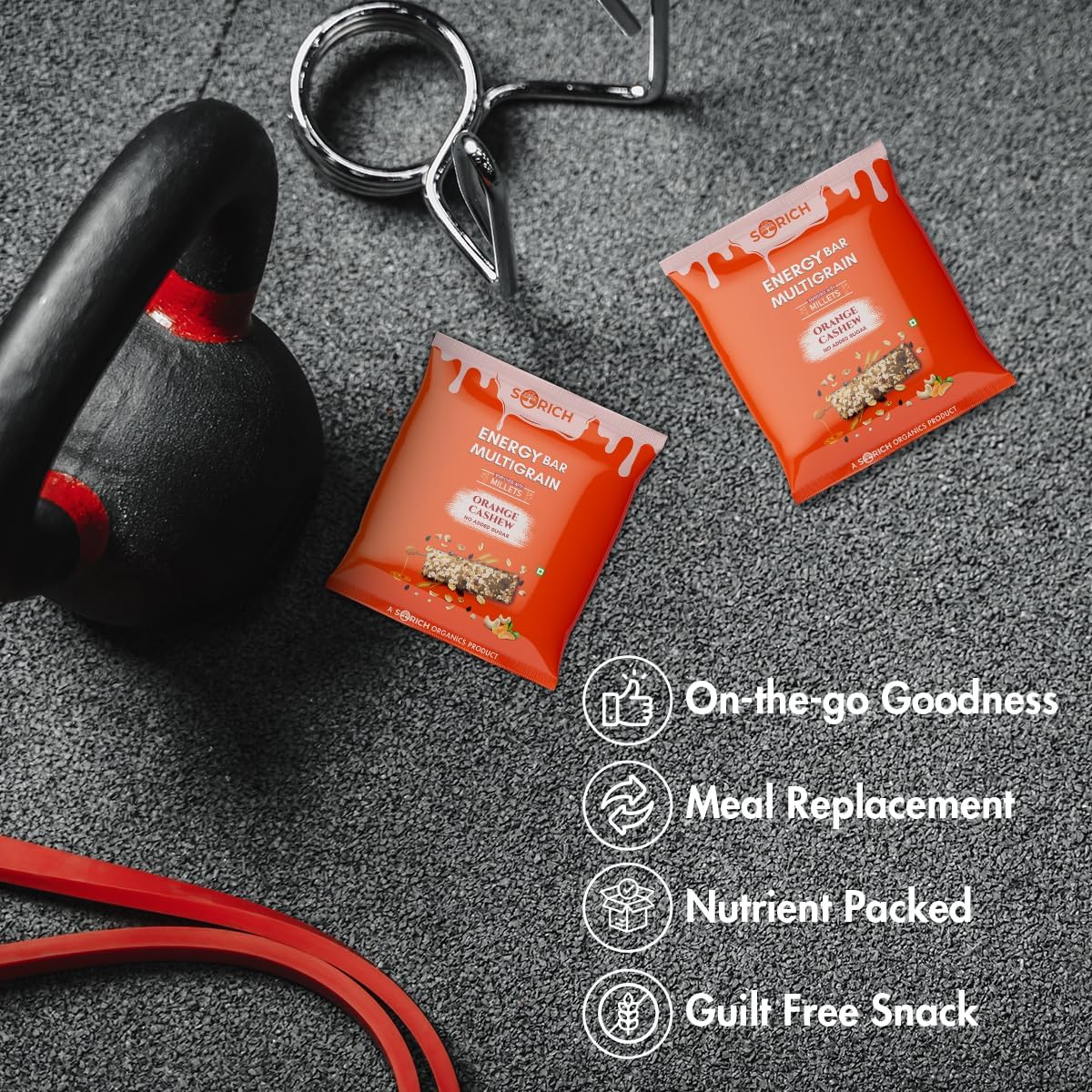 Sorich Organics Multigrain Orange Cashew Energy Bars Mini | Pack Of 32 * 15 (480 Gm)|Healthy Diet & No Added Sugar | Dates Oats With Dry Fruits | Nuts Brown Rice & Millets | With Chia & Dates Seeds