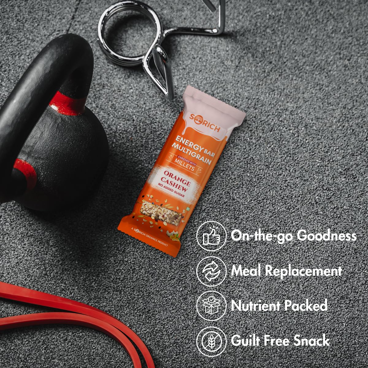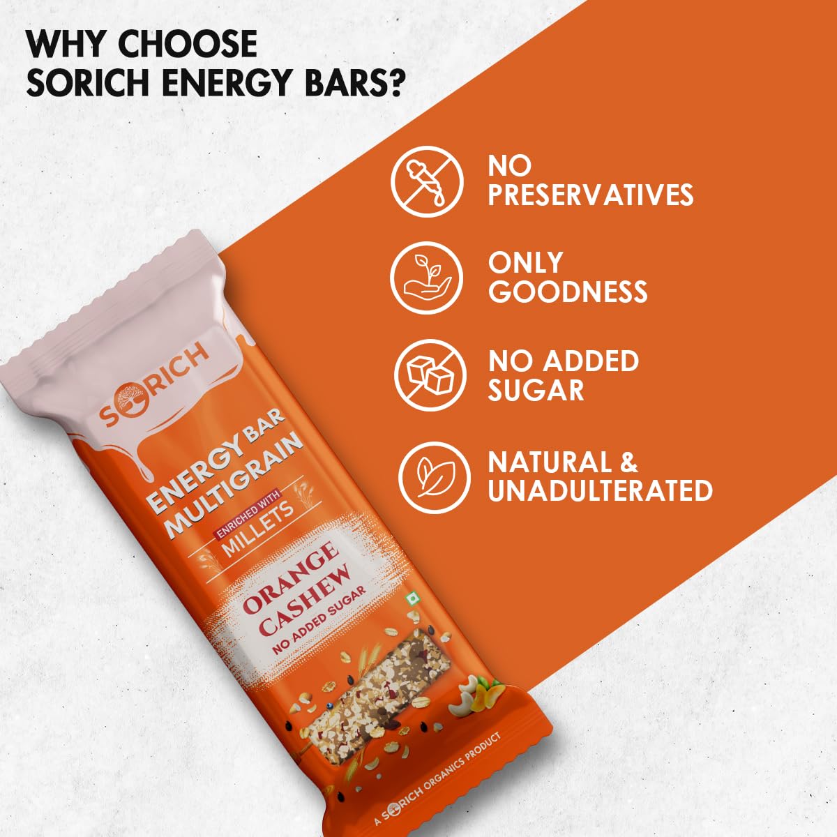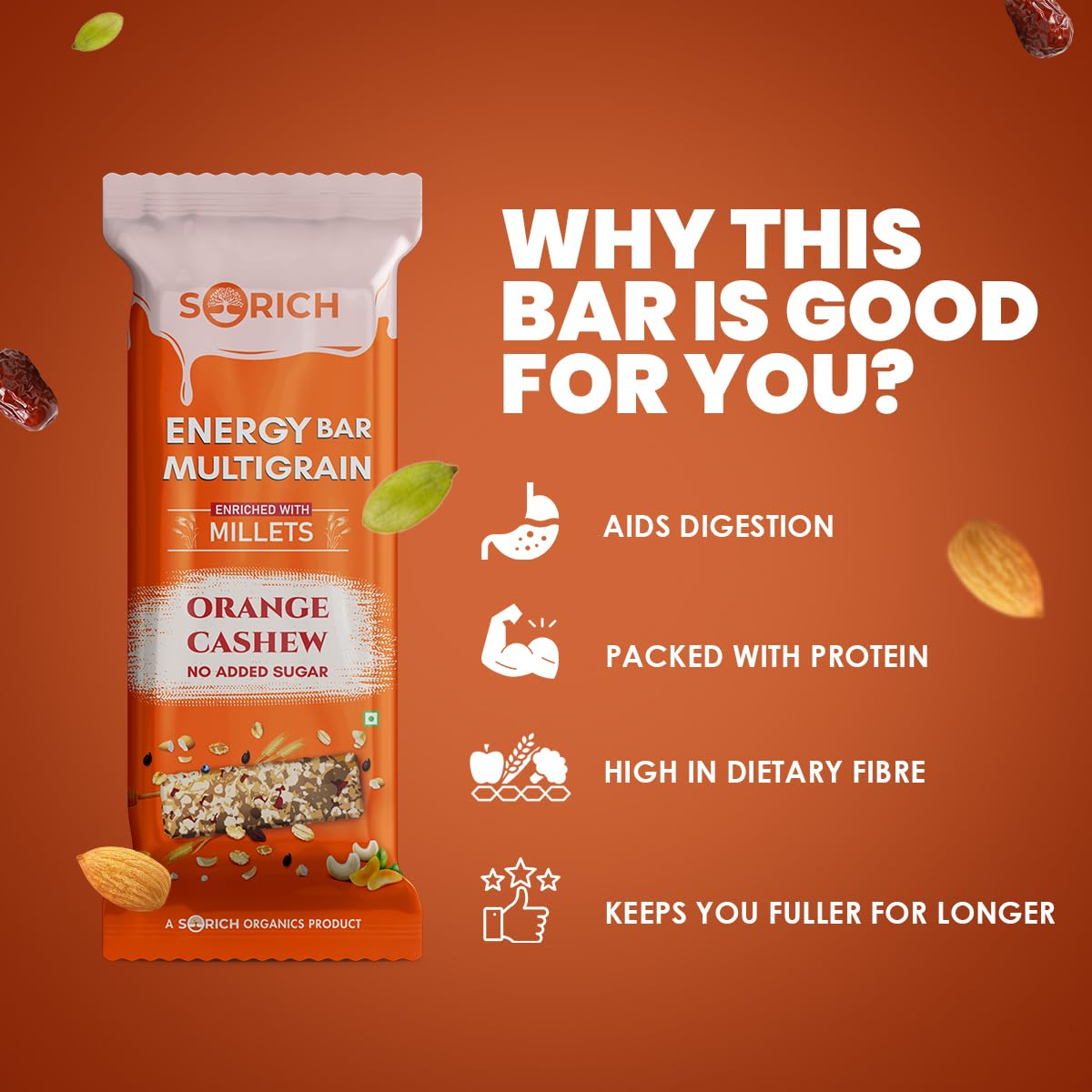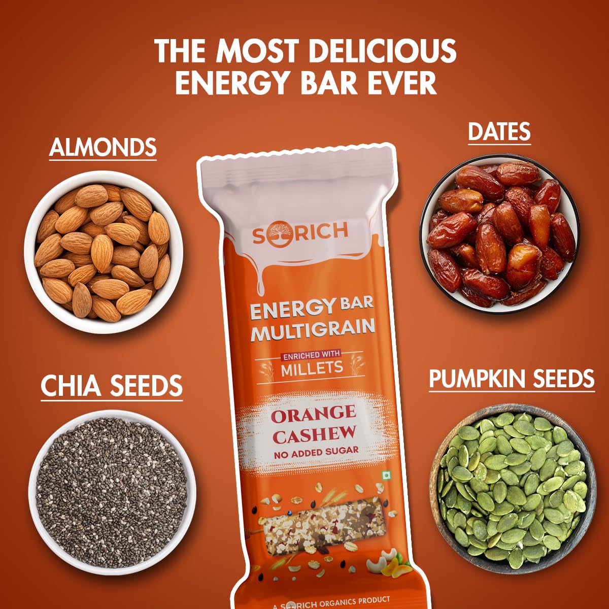 Sorich Organics Multigrain Orange Cashew Energy Bars Pack Of 6 * 35 (210 Gm) | Healthy Diet & No Added Sugar | Dates Oats With Dry Fruits| Nuts Brown Rice & Millets | With Chia & Dates Seeds