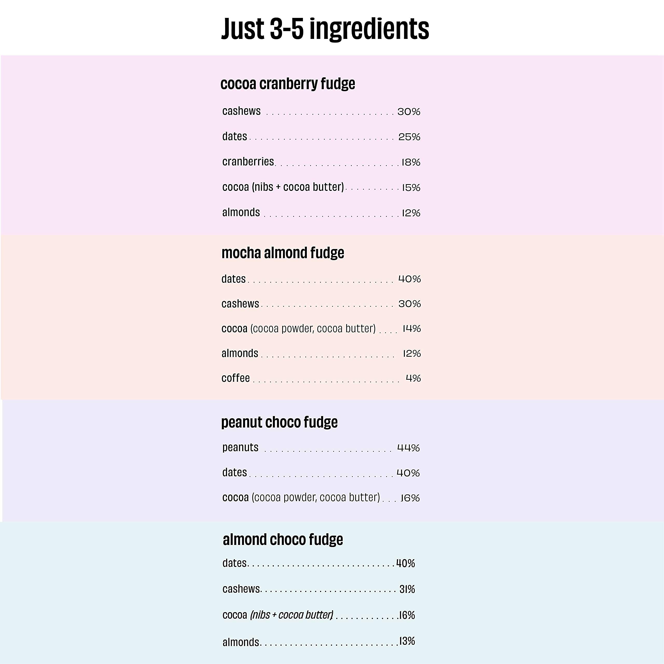 The Whole Truth - Energy Bars - Fudge All! | Pack of 6 x 40g | 2 Almond Choco Fudge 2 Peanut Choco Fudge 1 Cocoa Cranberry Fudge 1 Mocha Almond Fudge | Dairy Free | No Added Sugar | All Natural